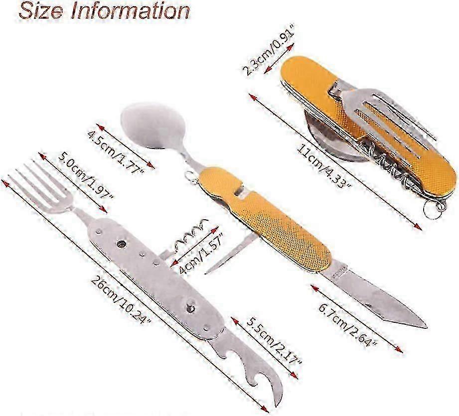Folding Camping Cutlery Set Stainless Steel Portable Utensil 6 in 1 Multitool Outdoor