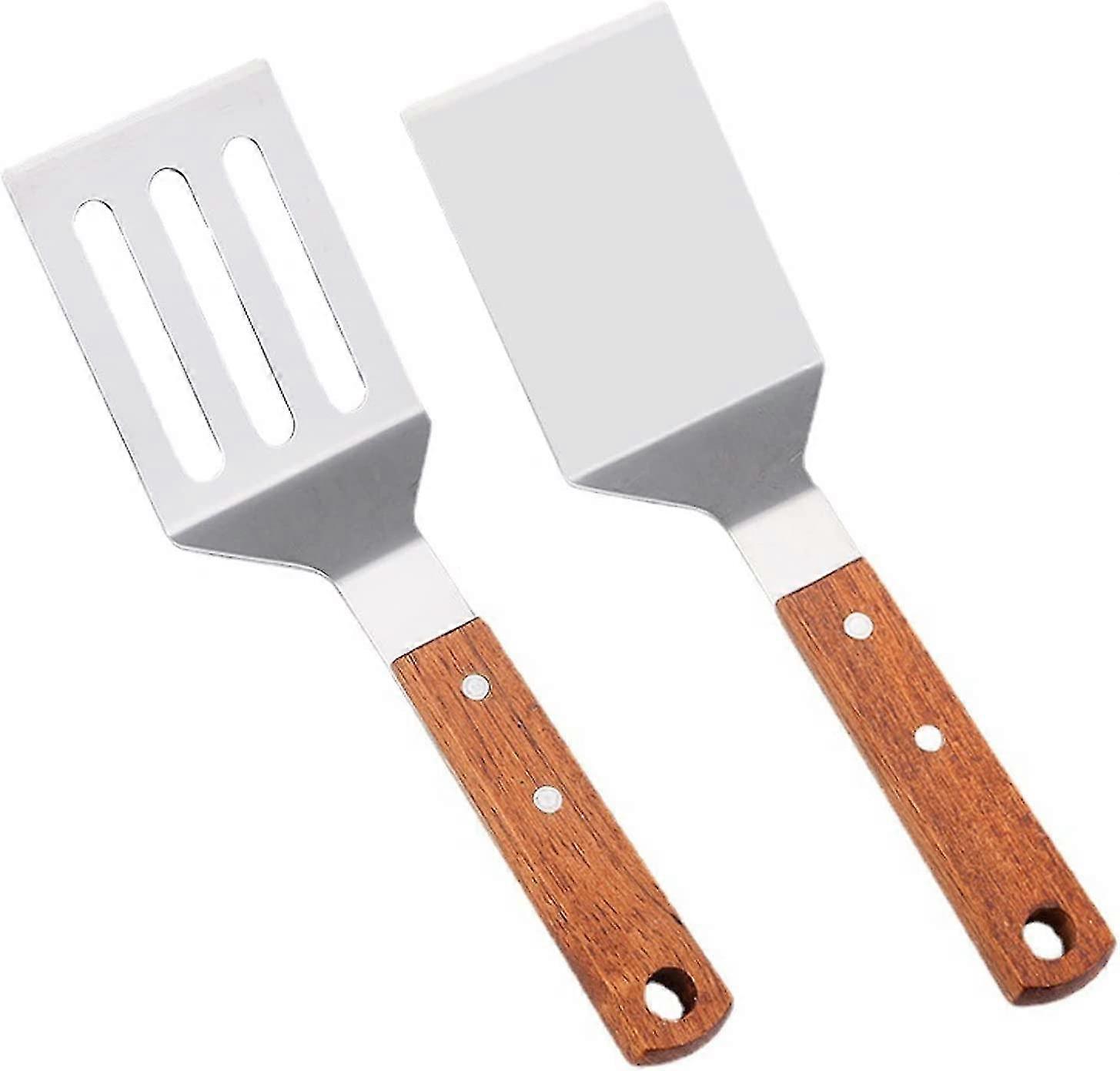 Stainless Steel BBQ Tools Set 2-Piece, Wooden Handle Grill Utensils with Slotted Spatula for European Barbecue
