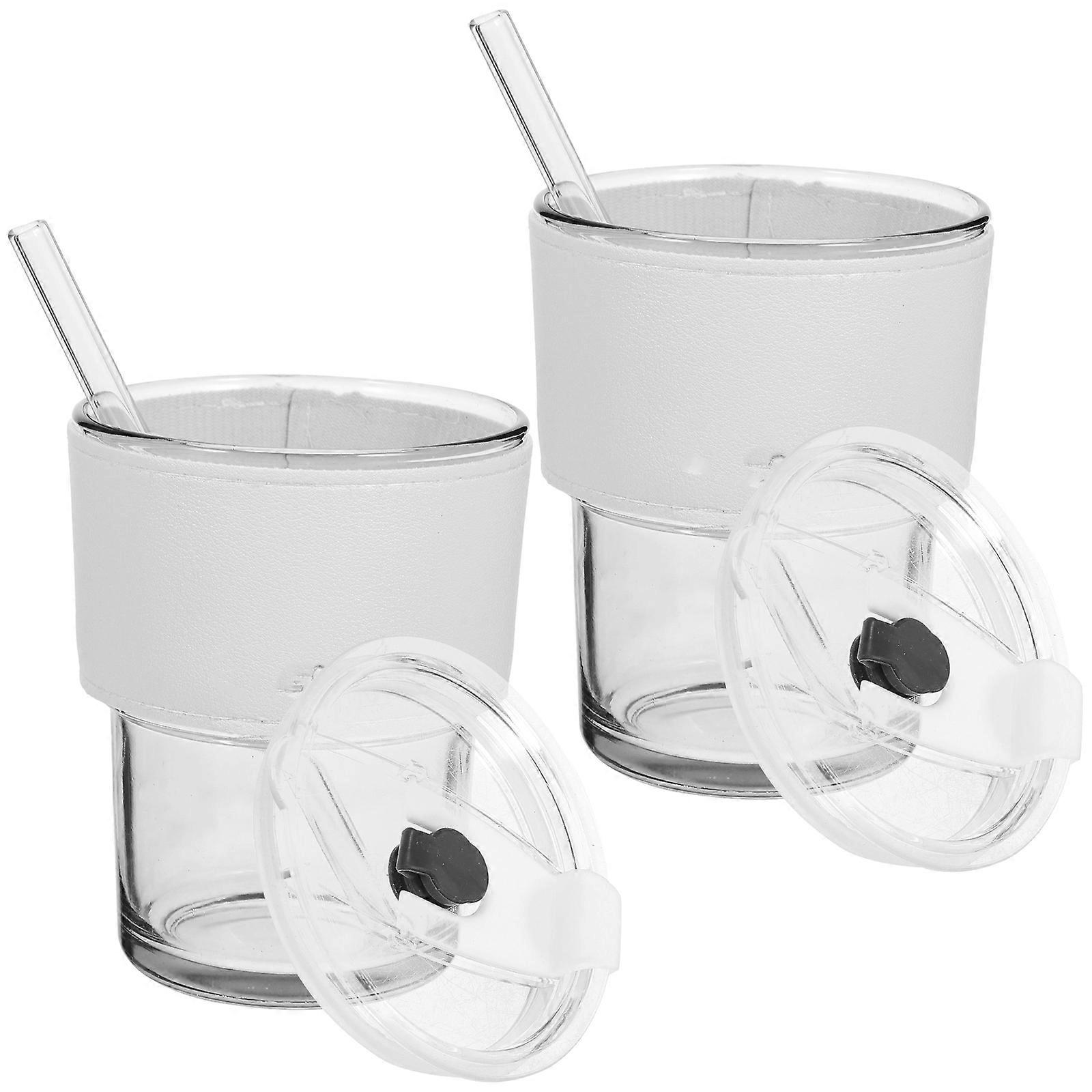 White 2Pcs Glass Drinking Cup Set Ideal For Liquid Storage Perfect For Outdoor Activities Home Office And Usage