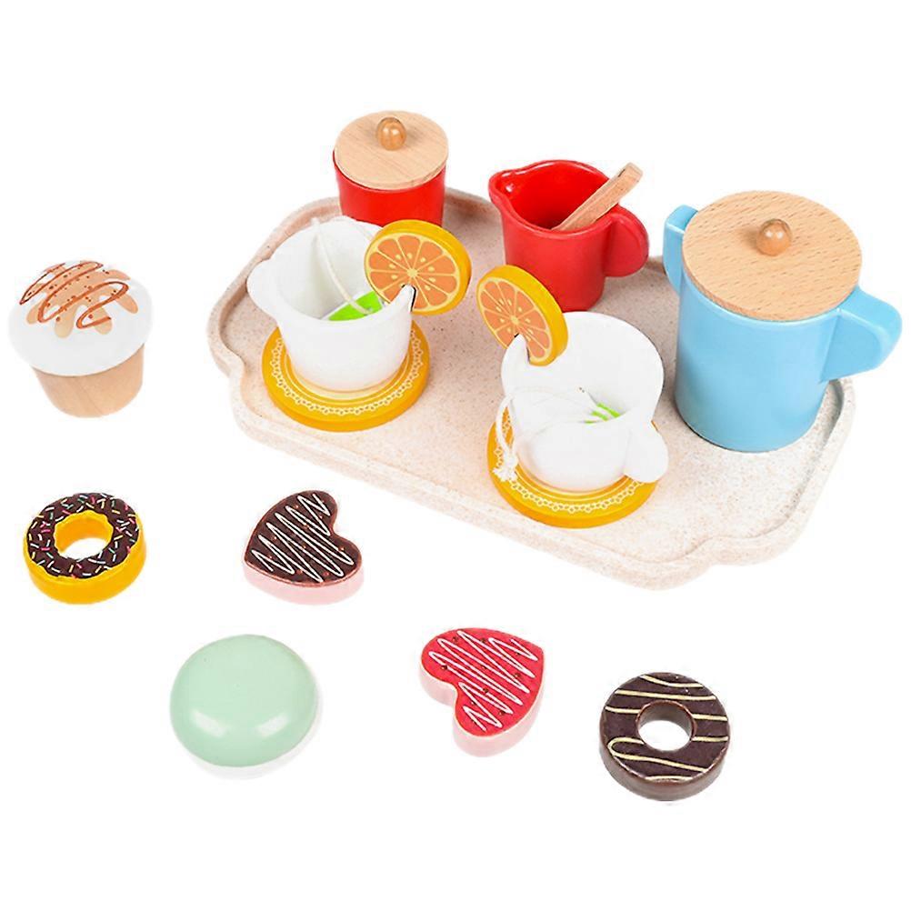 Afternoon Tea Toy Set for Kids Playing with Excellent Texture and Wear Resistance Wood Plastic Assorted Color