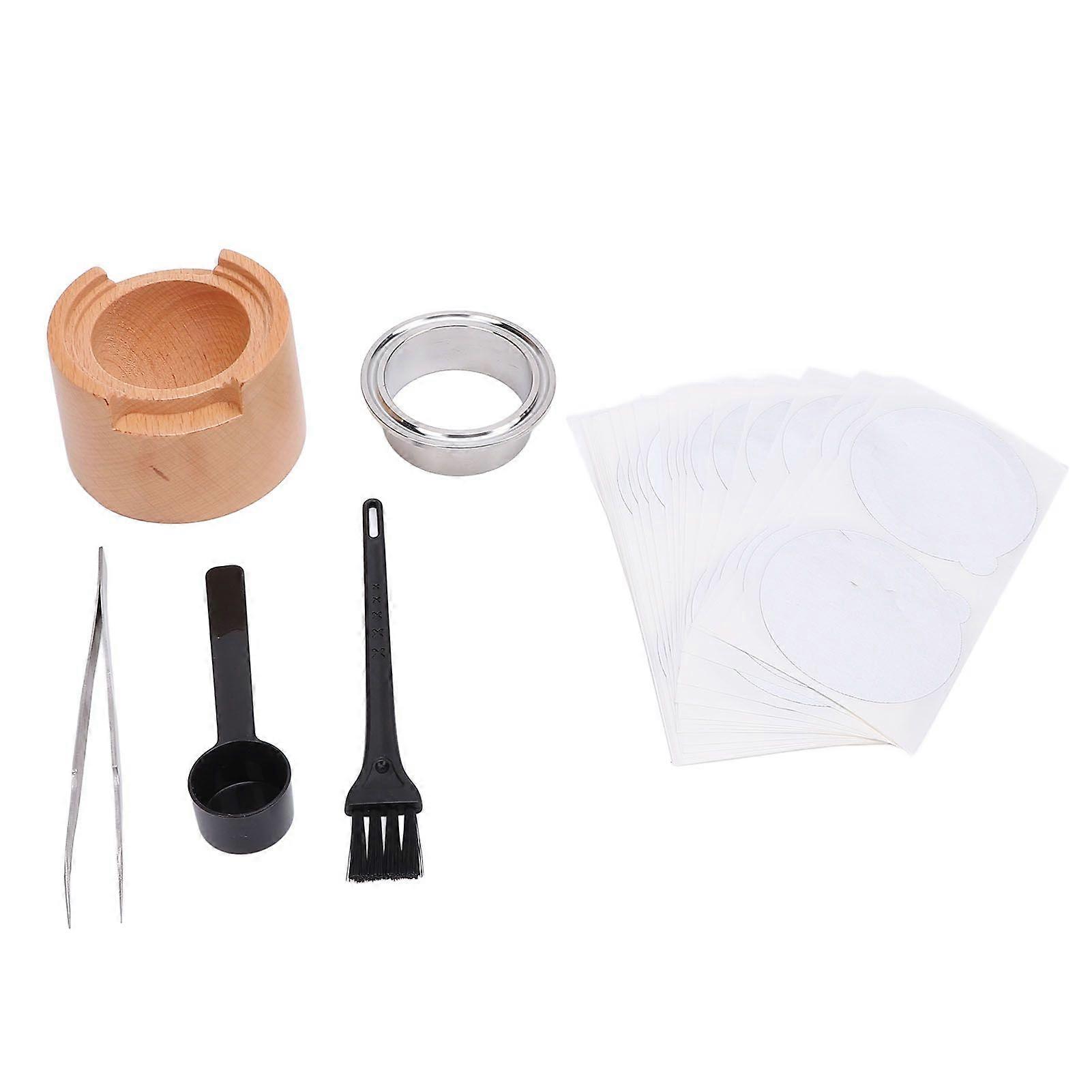 Coffee Capsule Refill Kit with 50pcs Aluminum Foil Seals Lids Spoon Brush Ring Clip Solid Wood Reusable Coffee Capsule Holder Kit for VertuoLine