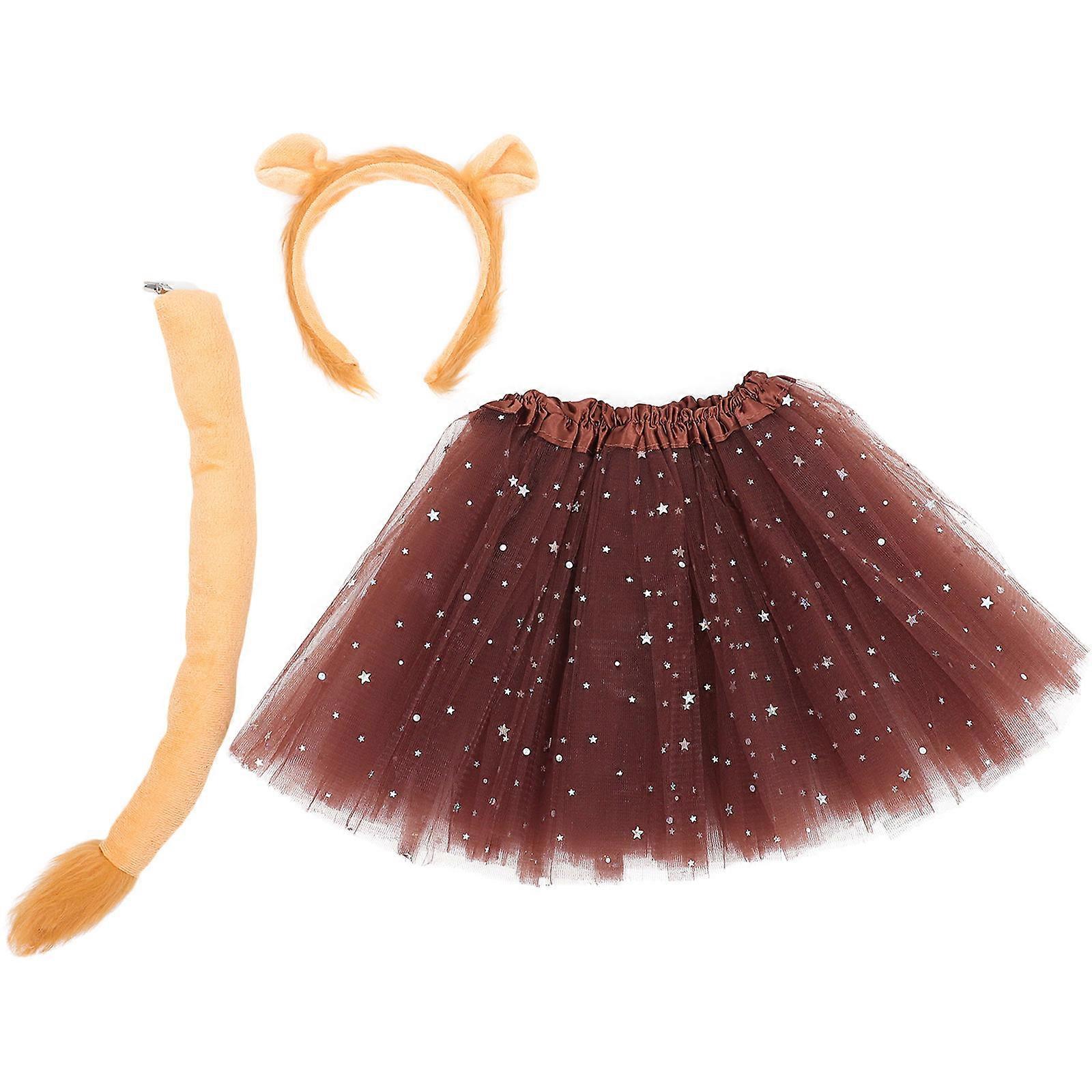 Lion Costume Accessories Set with Realistic Ears, Tutu Skirt, and Tail for Animal Theme Parties, Halloween, Cosplay, and Stage Performances