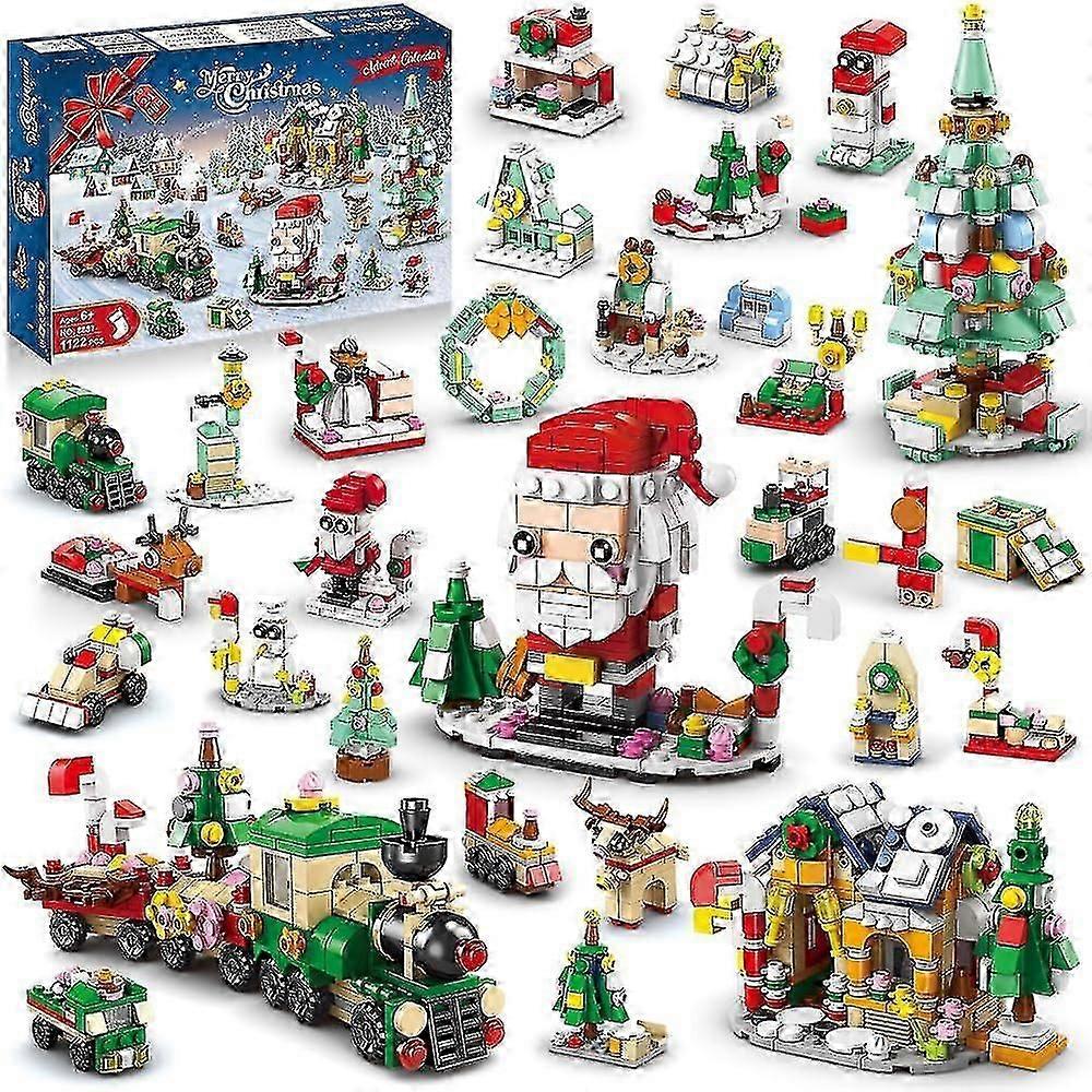 Christmas Advent Calendar Building Set - 2023 Countdown Playset 24 Collectible Surprises Christmas Toys Includes Santa Claus Tree Train House Blocks