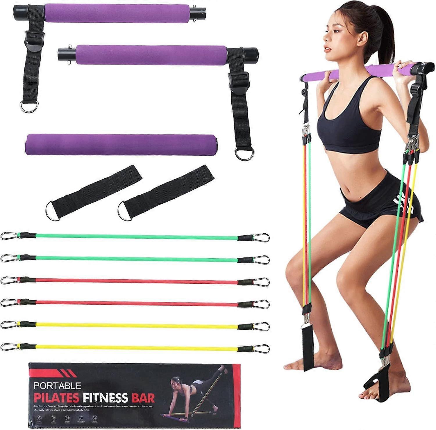 Pilates Barbell Set with Resistance Bands, Portable Pilates Exercise Bar with Foot Rings for Men Women Stretch Twist Sit-Ups Home Gym Equipment