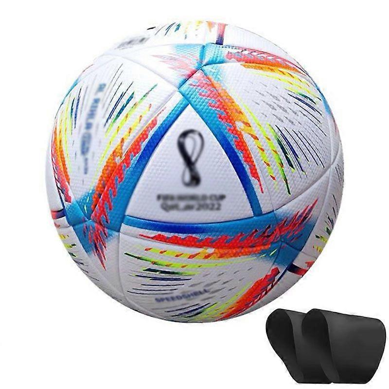 This Soccer Ball is a replica of the 2022 Qatar World Cup Size 5 football, meticulously designed to mimic the official match ball's design and appearance. Crafted from high-quality PU (polyurethane) material, it offers a soft touch and excellent durability. The classic 12-panel construction combined with a sculpted speed shell not only looks stunning but also ensures optimal flight speed and spin performance, making it ideal for training and friendly matches. Experience the World Cup atmosphere in your daily gameplay. With its unique design and commemorative value, this ball makes an excellent gift for Soccer Ball enthusiasts or a cherished keepsake for personal collection, reflecting a special connection to the 2022 Qatar World Cup. Includes packaging 1 x Soccer ball 1 x needles 1 x Anti-Slip Socks