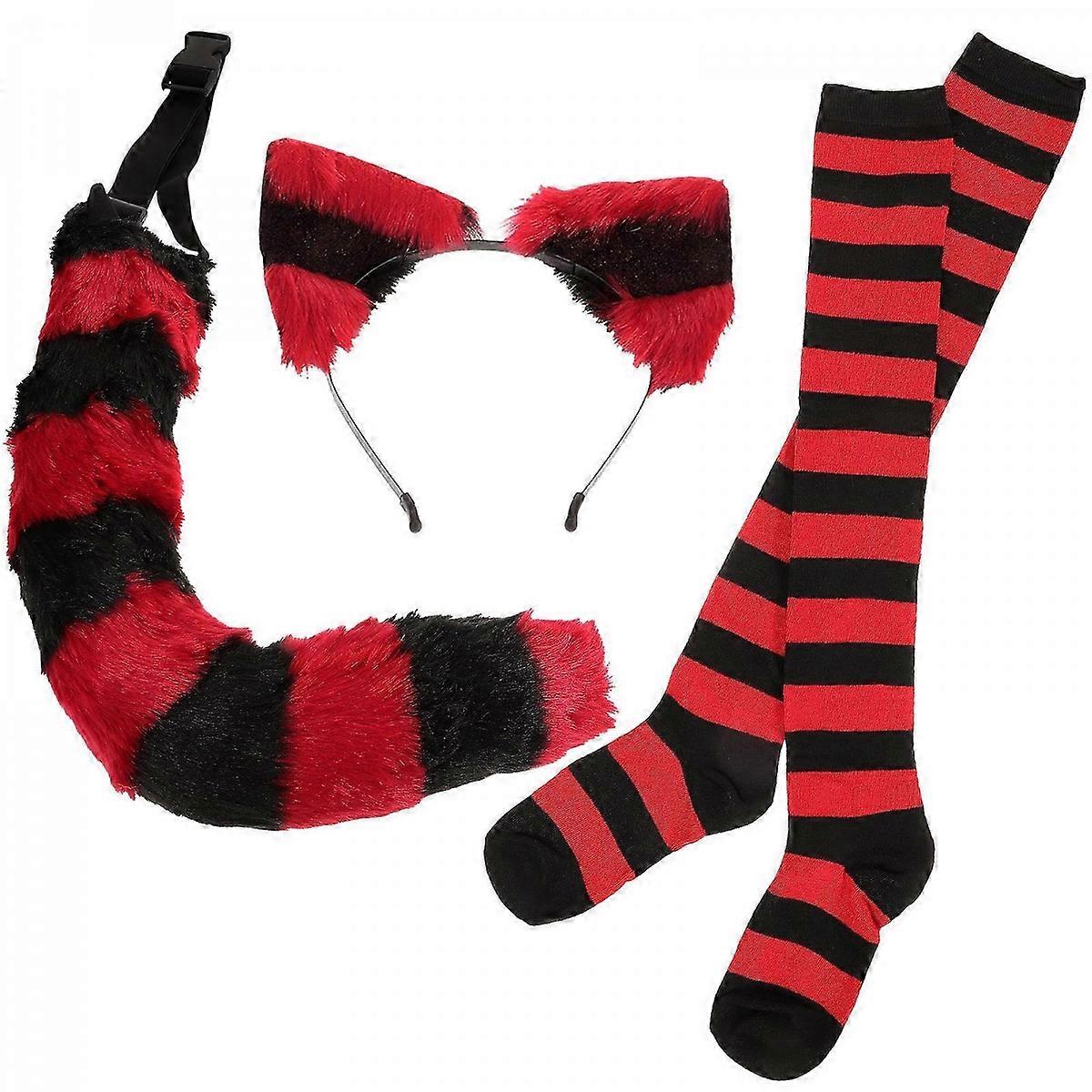 Cat Ears Headband Tail Stockings Set for Women Girls 3Sets Animal Costume