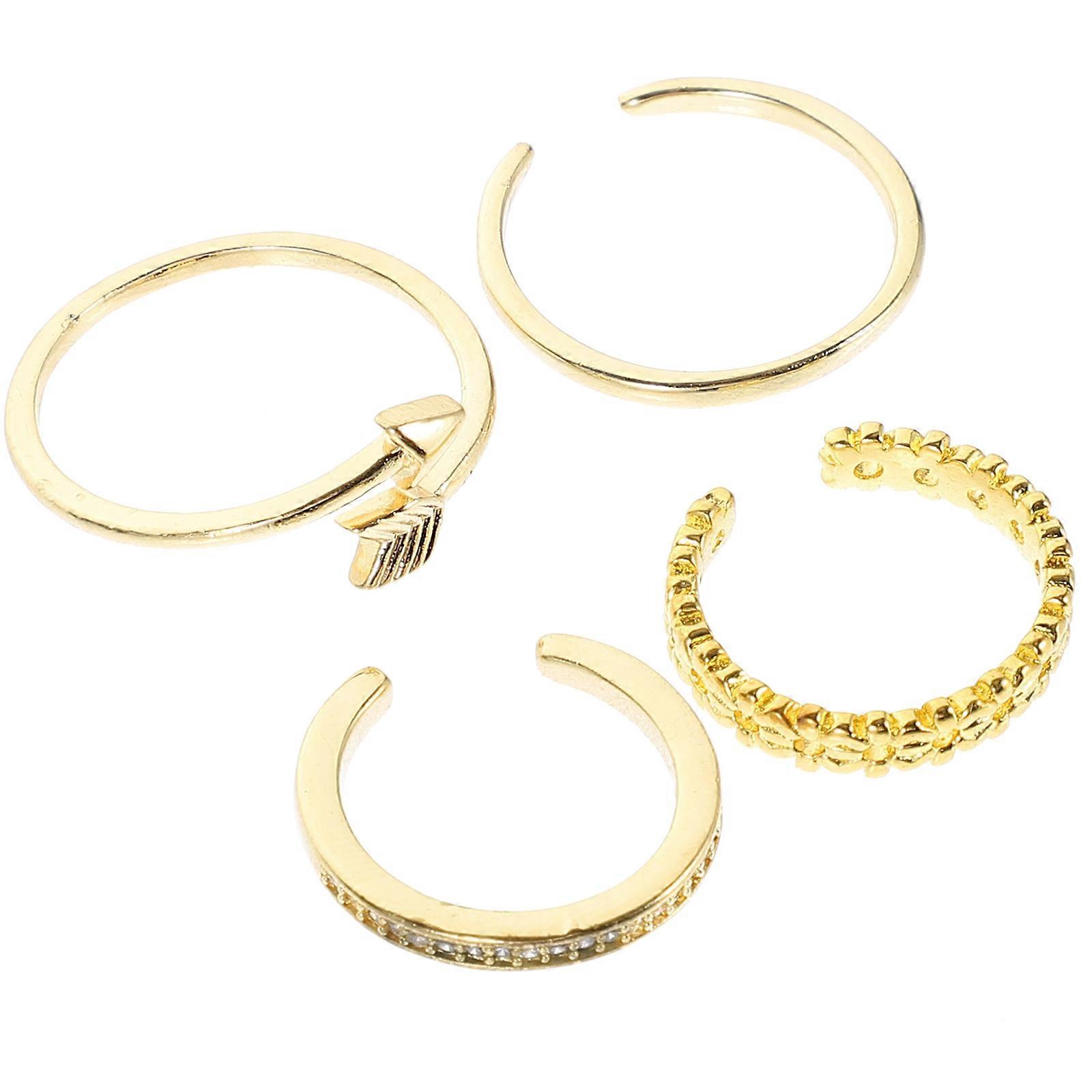 Women Adjustable Ring Set Golden Color Zirconia Material Dainty Finger Ring Party Accessory 4Pcs