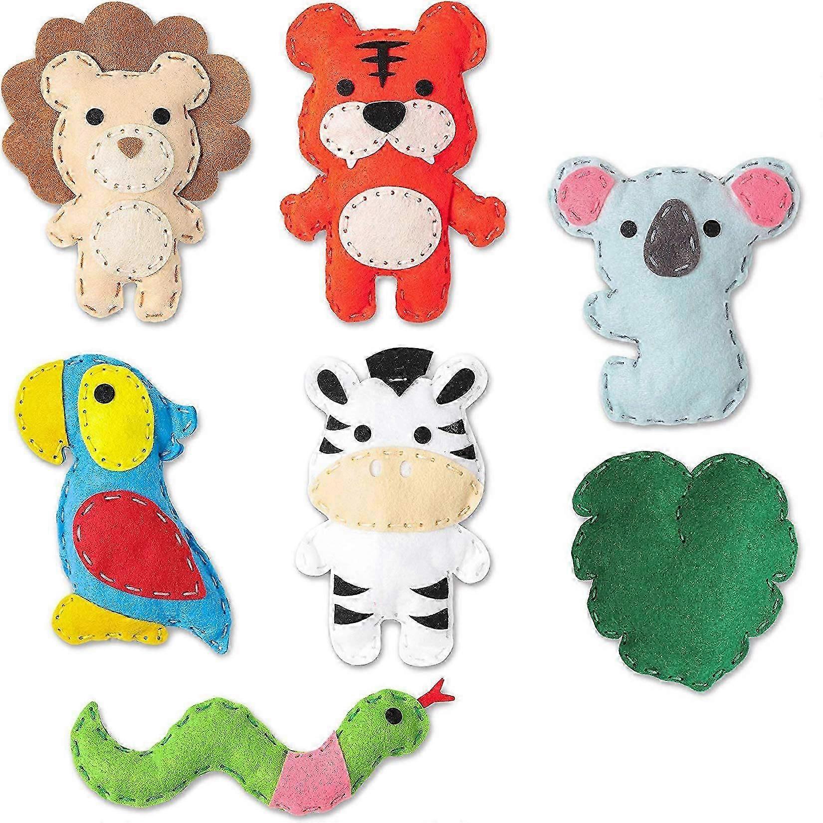Jungle Animal Felt Sewing Kit for Kids Wild Animals Sewing Pack for Beginner Boy Girls Fun DIY Sewin