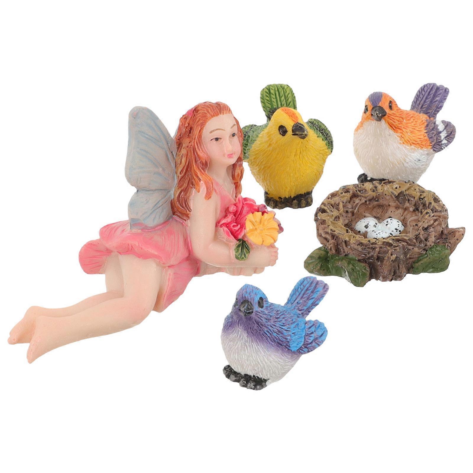 Resin Bird and Fairy Decor Set for Home Office or Garden Decoration 1 Set Assorted Color