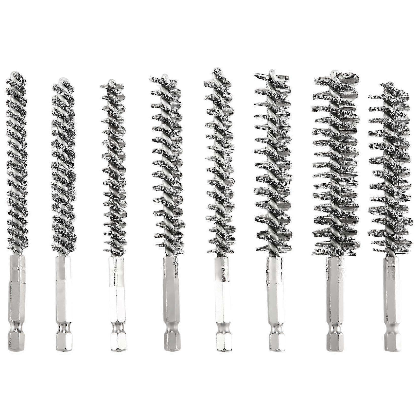 Wire Brush Drill Bit Set, 8pcs with 1/4 Inch Hex Shank Steel Wire Twisting Brushes for Cleaning Drilling