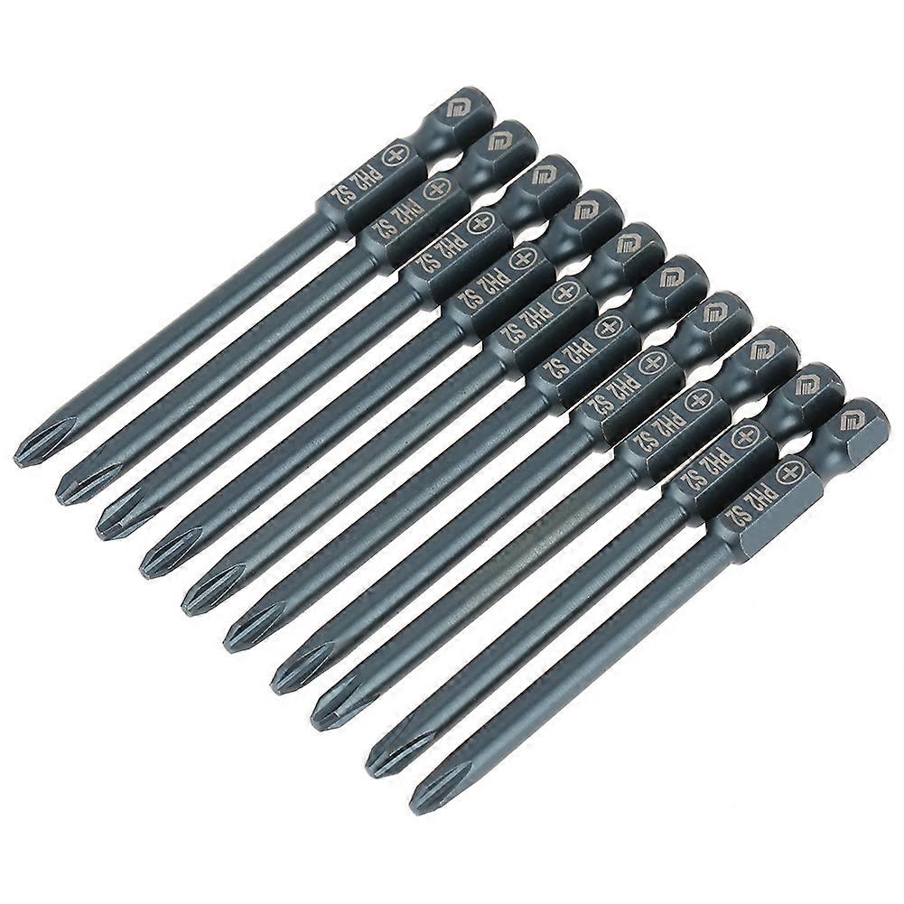 10pcs S2 Steel Cross Head PH2 Screwdriver Bits Set 1/4inch Hex Shank 75mm