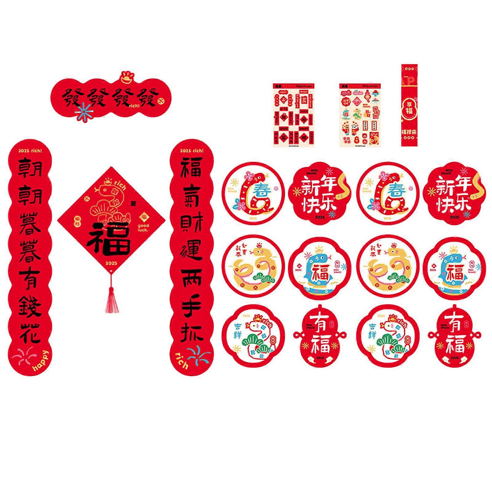 Chinese New Year Decoration Set with Bright Couplets and Luck Characters Perfect for Traditional Celebration