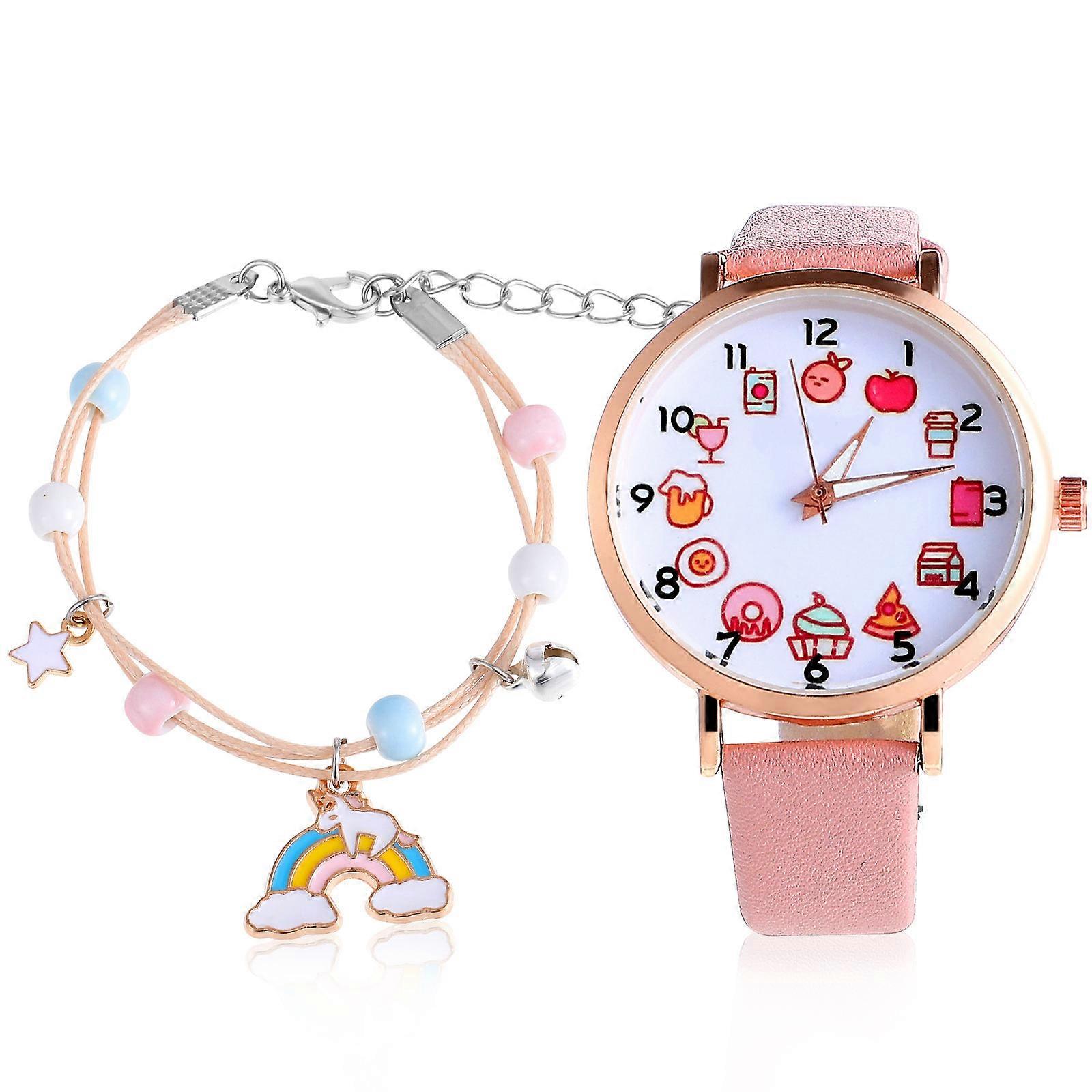 Quartz Watch Set Accurate Timekeeping Everyday Use Circular Shape Girls Kids Watch 8.45X1.30X0.31in 1 Set