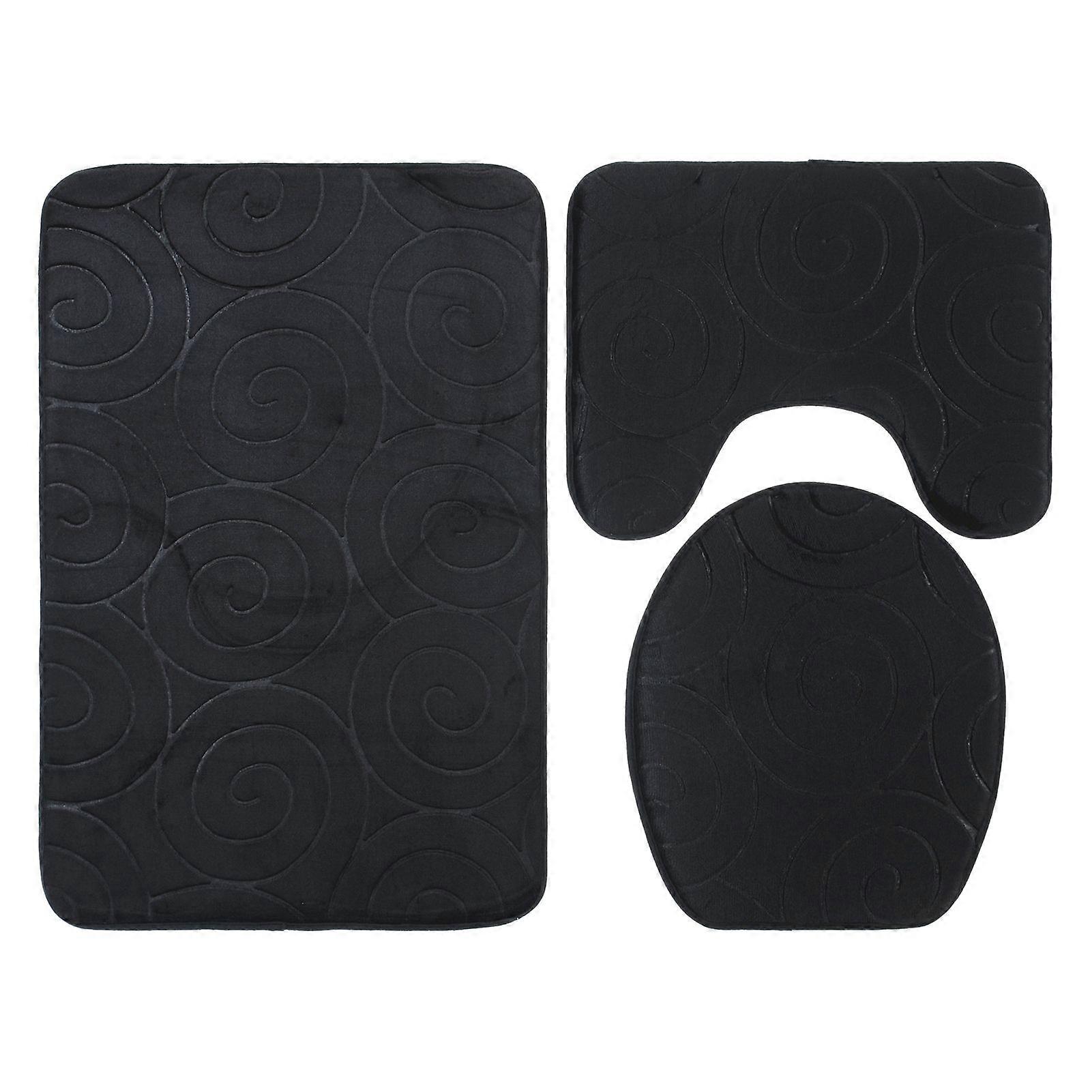 3 PCS Bathroom Mat Set Stone Embossed Toilet Lid Cover Floor Mats Bathtub Side Absorbent Carpets Black