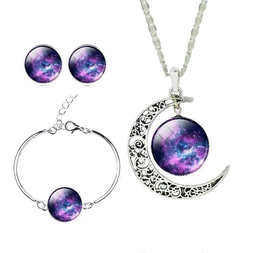 Galaxy Jewelry Necklace Earring Bangle Set for Women 3Pcs