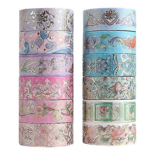 Gold Foil Flower Washi Tape Set, Floral Washi Tape, Botanical Washi Tape For Journal, Art And, craft supplies.
