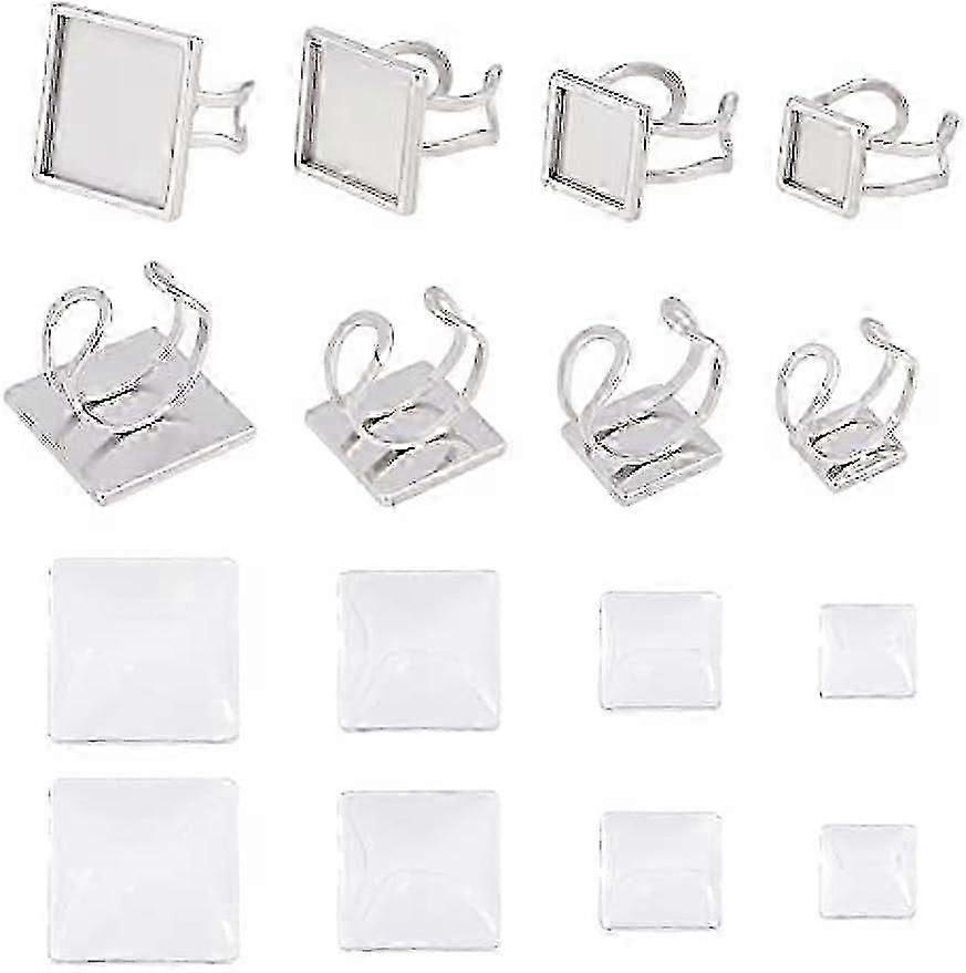 4 Sizes DIY Square Blank Dome Cuff Ring Making Kit 8pcs Stainless Steel Pad Ring Settings