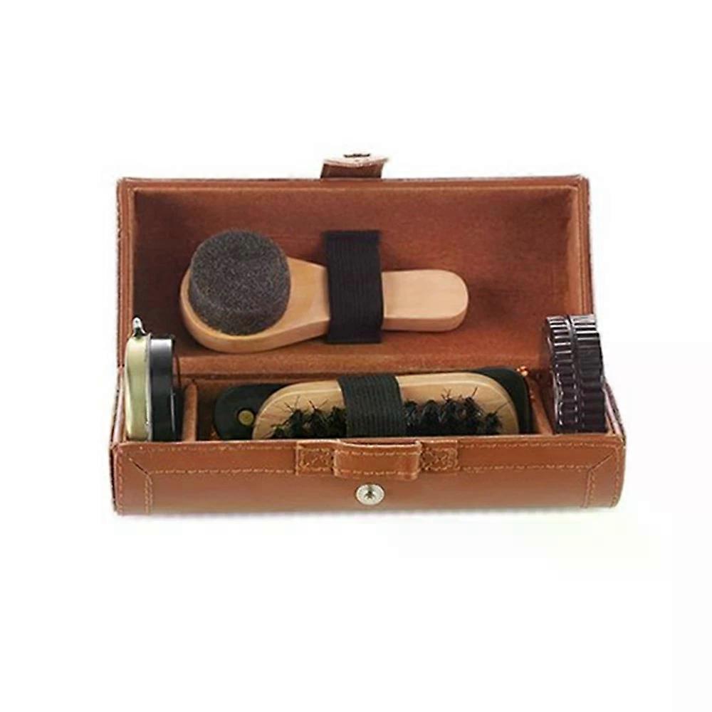 Shoe Polish Maintenance Set, 16.5x10x10cm Portable Shoe Care Kit with Polishing Stick & Brush for Travel Office Cleaning