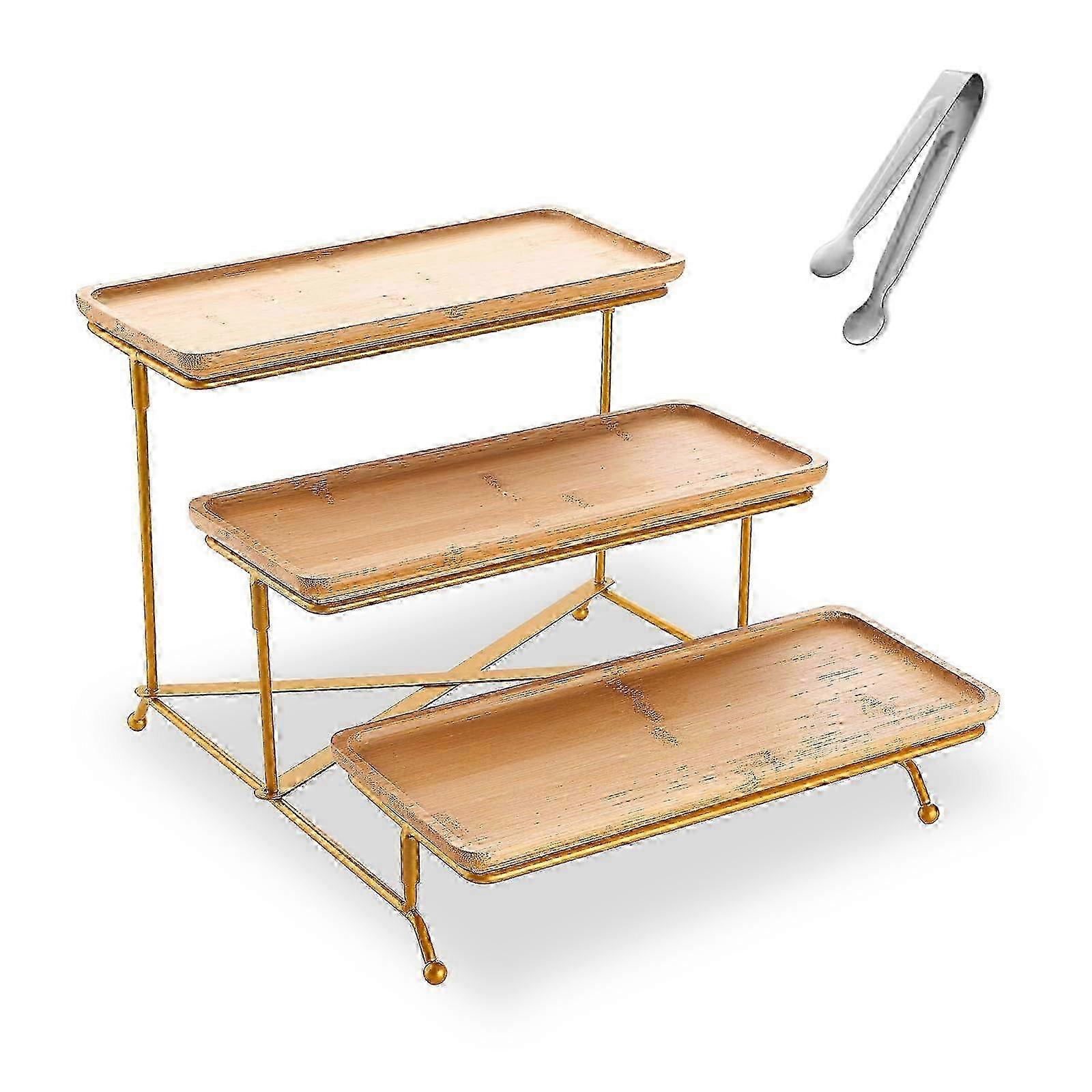 3-tier serving tray set collapsible bamboo dessert display with stand for entertaining and serving