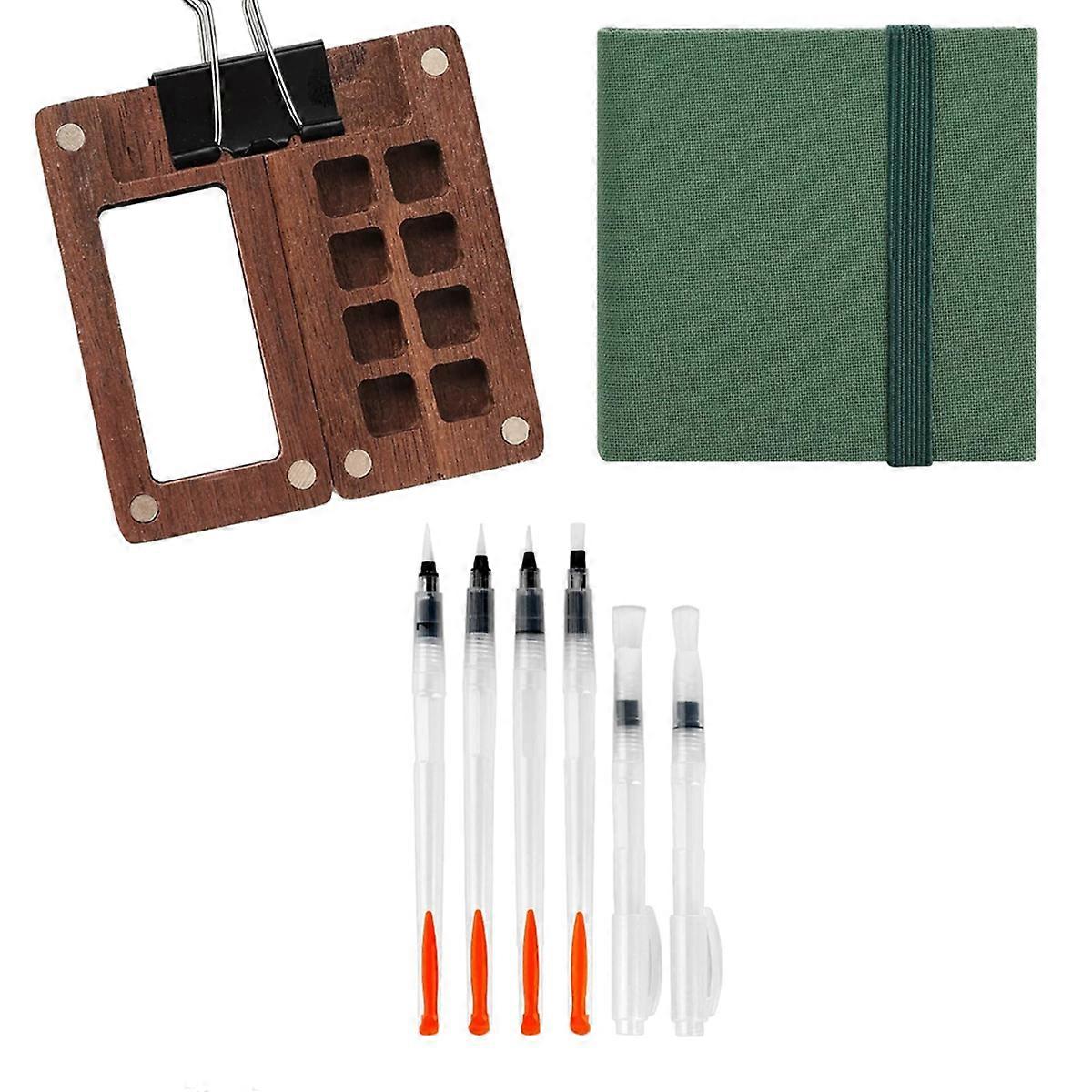 Mini Watercolor Paint Set - Portable Travel Kit with Wooden Palette, Sketchbook, Brushes, and Clips for Artists Painters