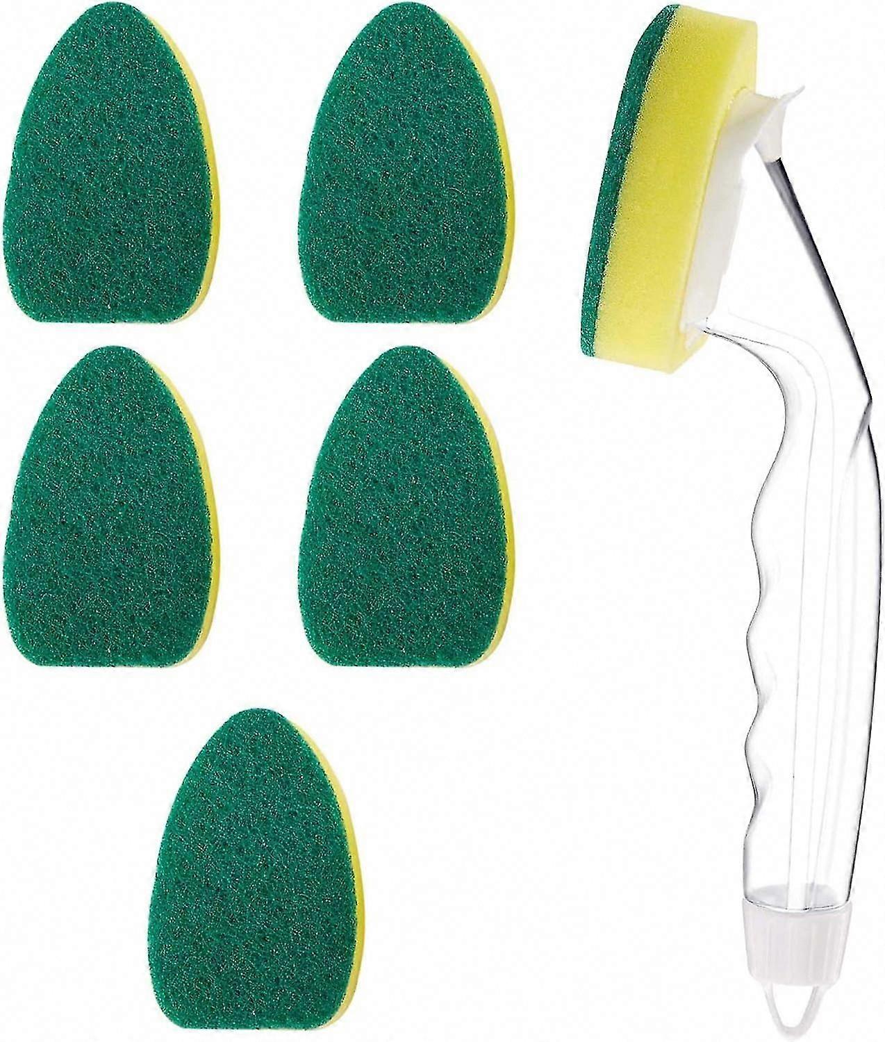 7-Piece Dishwand Sponge Refill Set with 6 Replacement Heads & 1 Handle for Kitchen Sink Cleaning