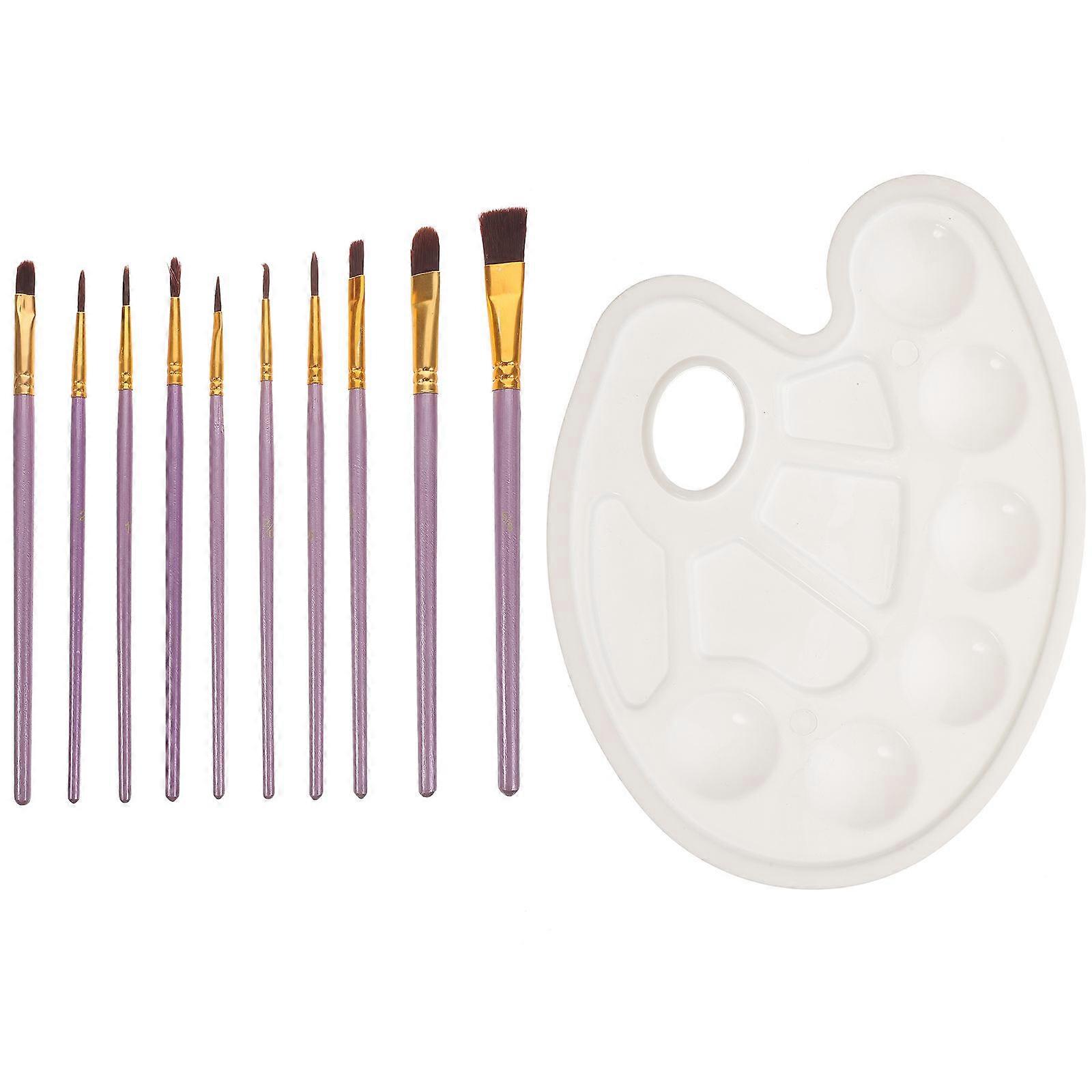 Fine Painting Brushes Kit For Watercolor Acrylic Oil Stencil Projects Portable Various Shapes Purple 22.5X17cm 1 Set Of 10 Brushes 1 Mixing Plate