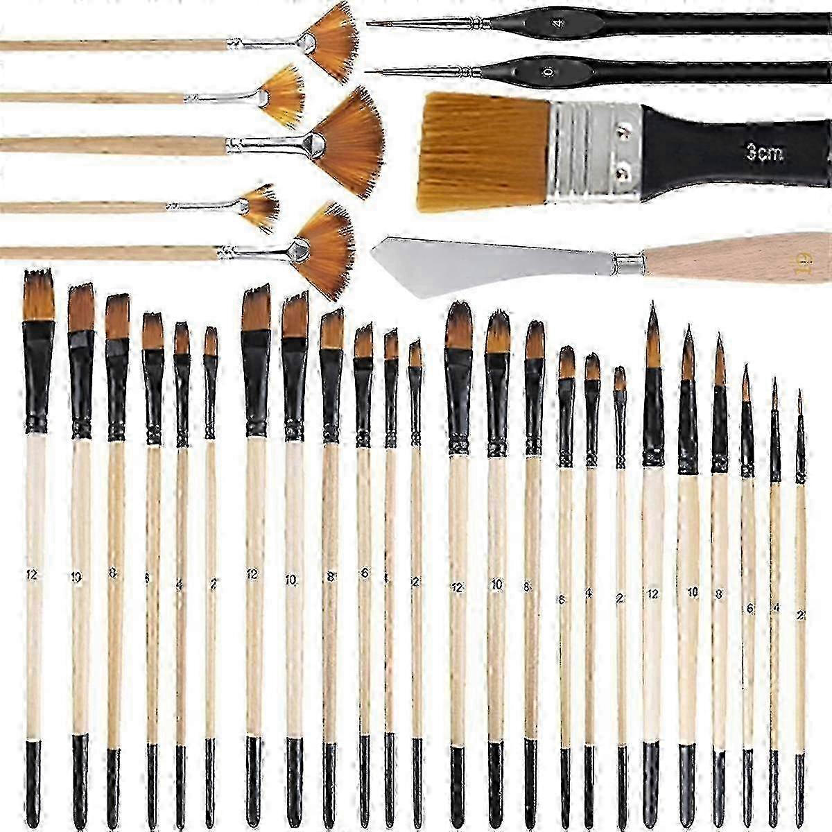 Paint Brushes Set Of 33 Pieces Wooden Handles Brushes Nylon Bristles With Gift Box Packaging,for Oi