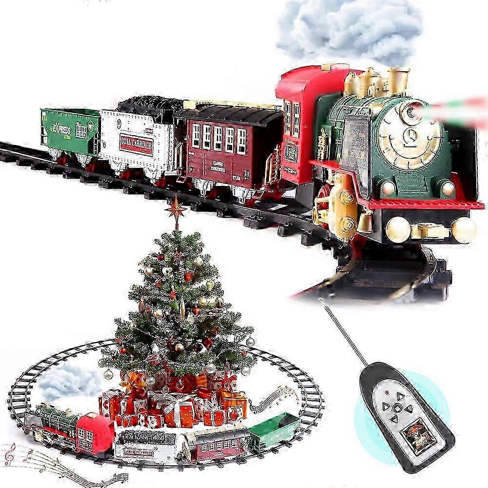 Christmas Tree Train Set, Latest Rechargeable Remote Control Electric Train Toy with Steam, Lights and Sounds, Electric Train Toy Railway Kit