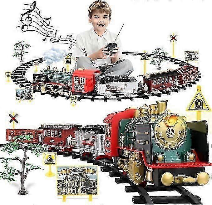 Christmas Electric Train Set With Steam, Sound & Light, Remote Control Train Toys W/steam Locomotive Engine