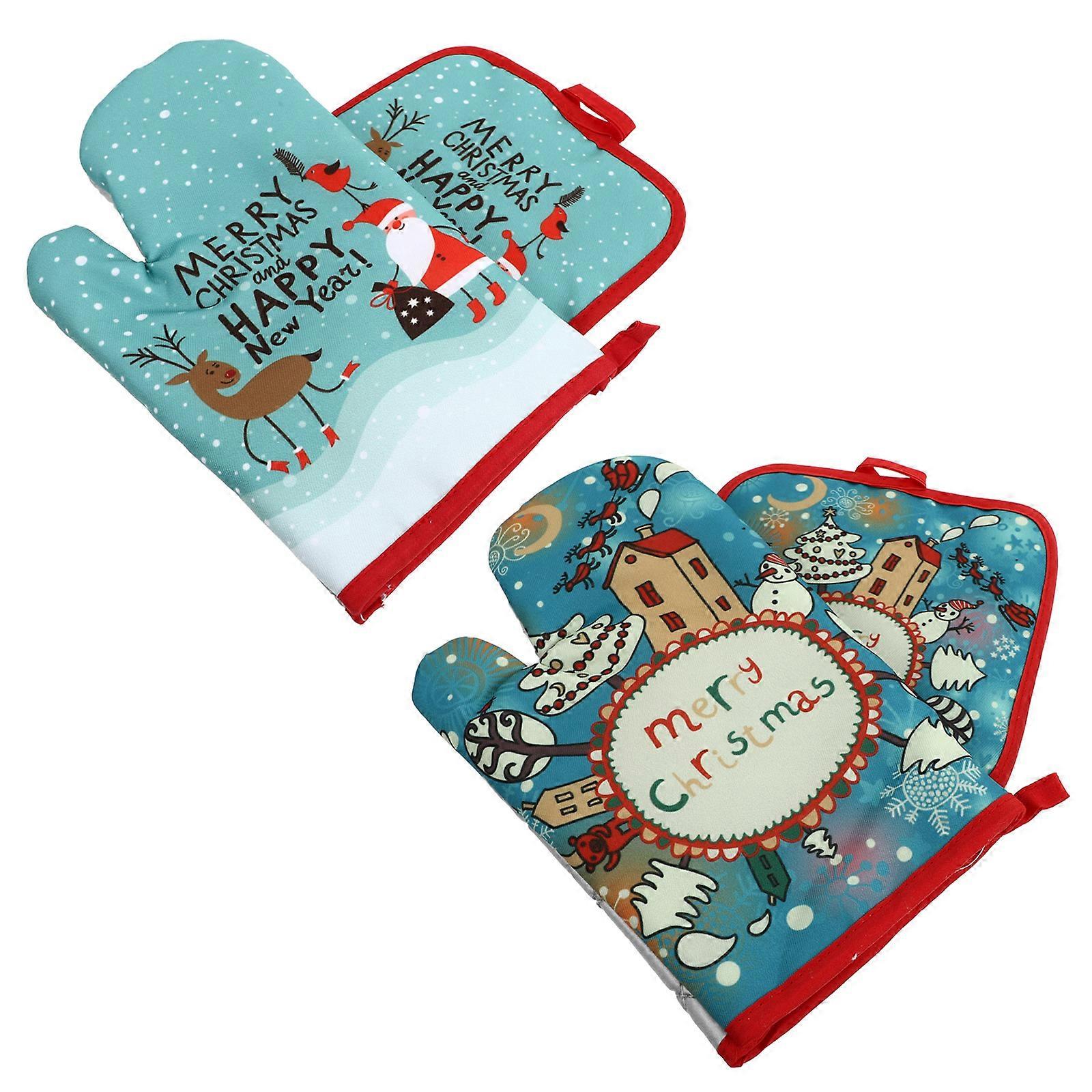 Oven Mitts Set Heat Resistant Mats Anti Scalding Gloves Cooking Kitchen Style Polyester Non Slip Grip Hanging Design Storage Convenience 2 Sets
