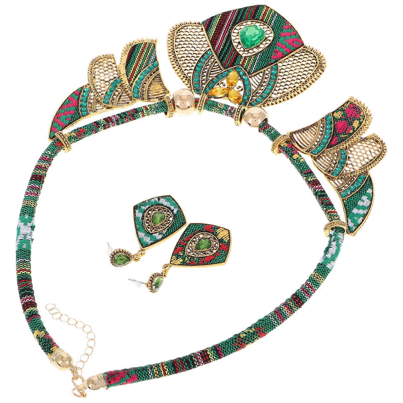 Bohemian Necklace & Earrings Set Ethnic Costume Jewelry for Women, Charming Dangle Earrings and Statement Necklace for Parties, Weddings, and