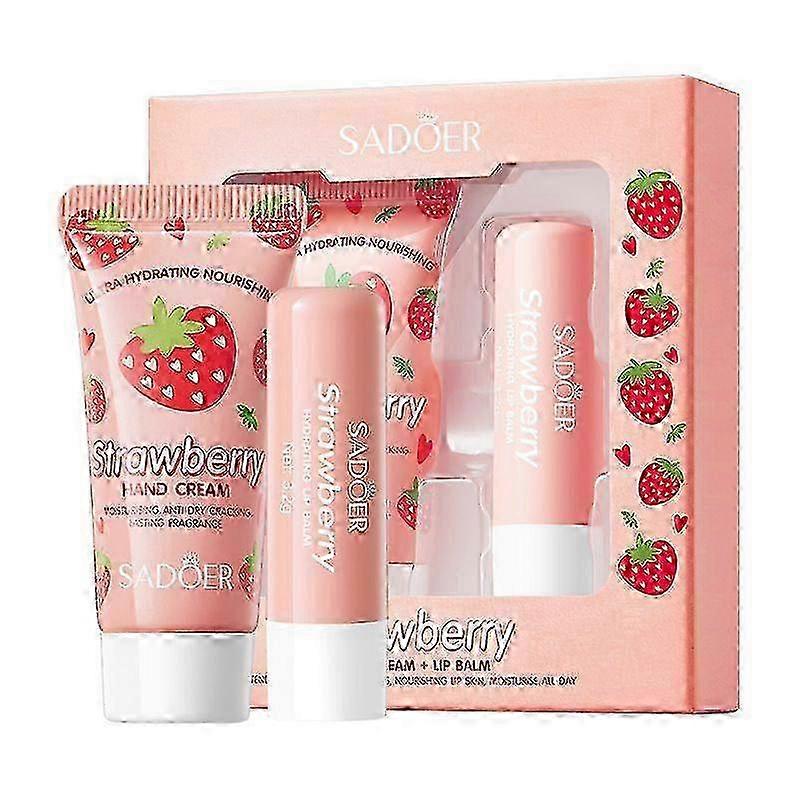 Strawberry Hand Cream & Lip Balm Set - Nourishing Moisturiser Gift Set for Dry Hands & Chapped Lips - Hydrating Skincare Set with Shea Butter & V