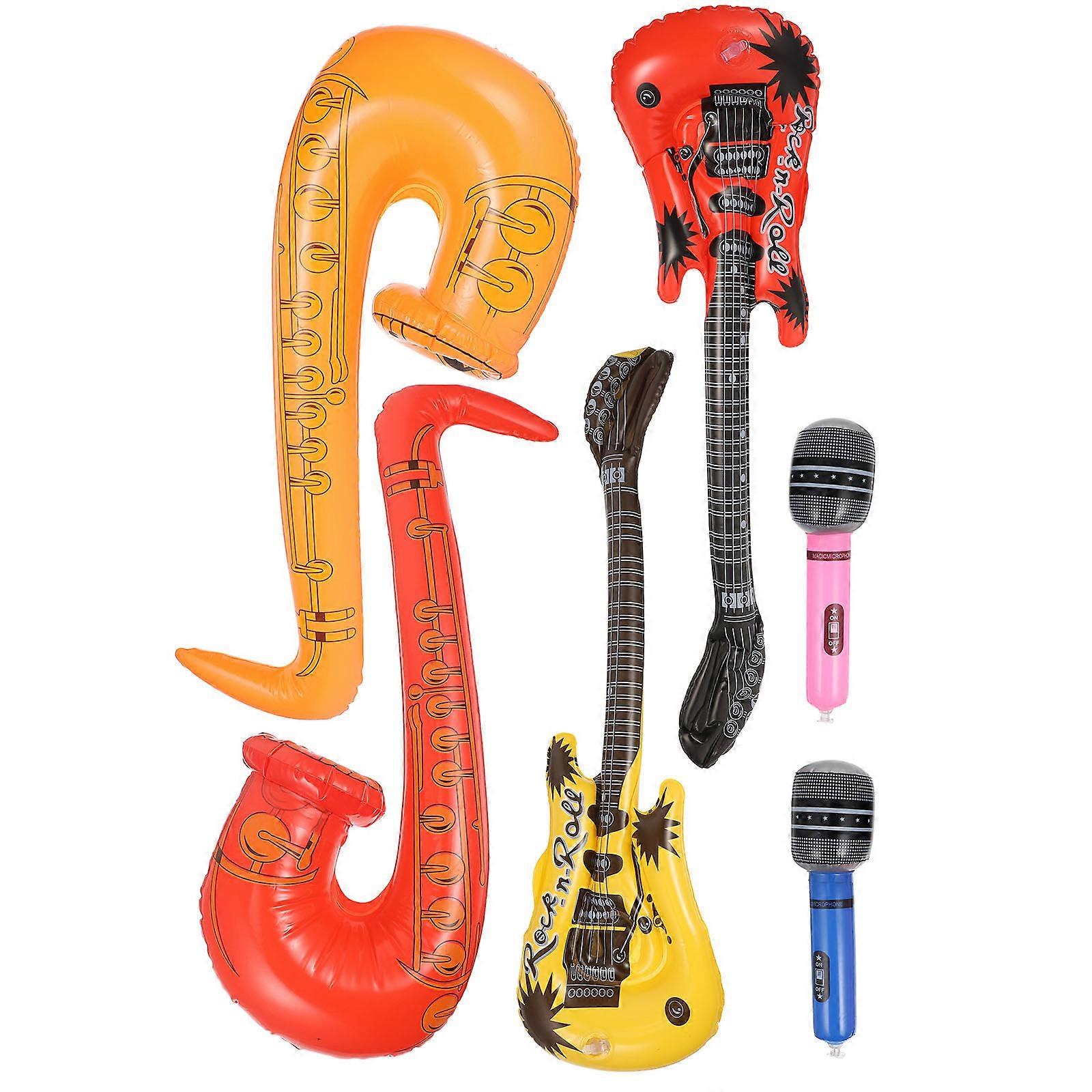 Musical Instruments Balloon Toy Set for Concert Stage Props Use Microphone Guitar Saxophone Aluminium Foil 6Pcs