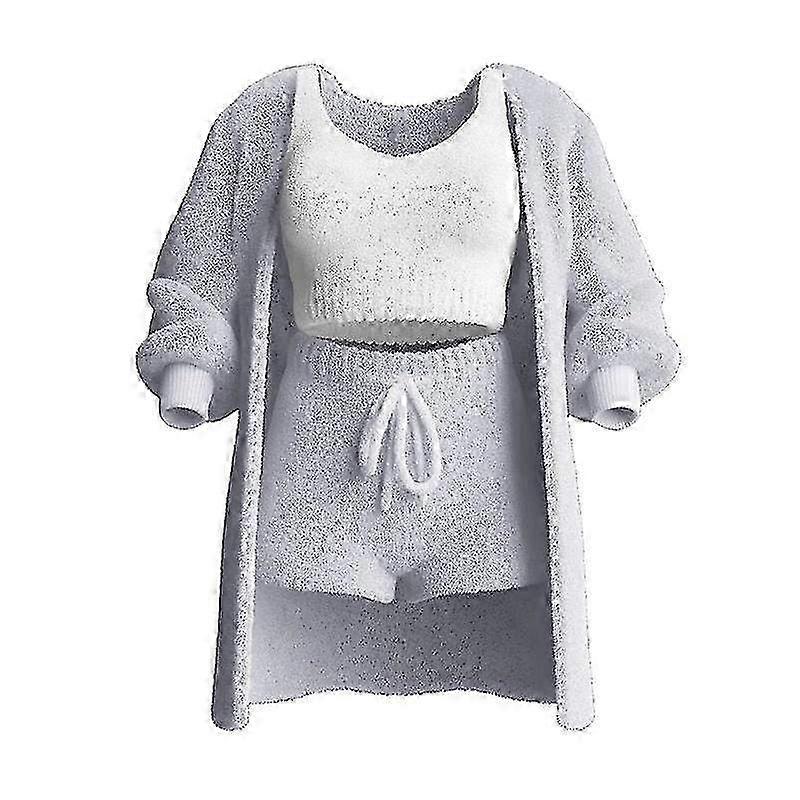 Cosy 3-piece Knit Set For Women Warm And Sexy Fuzzy Fleece Pajamas