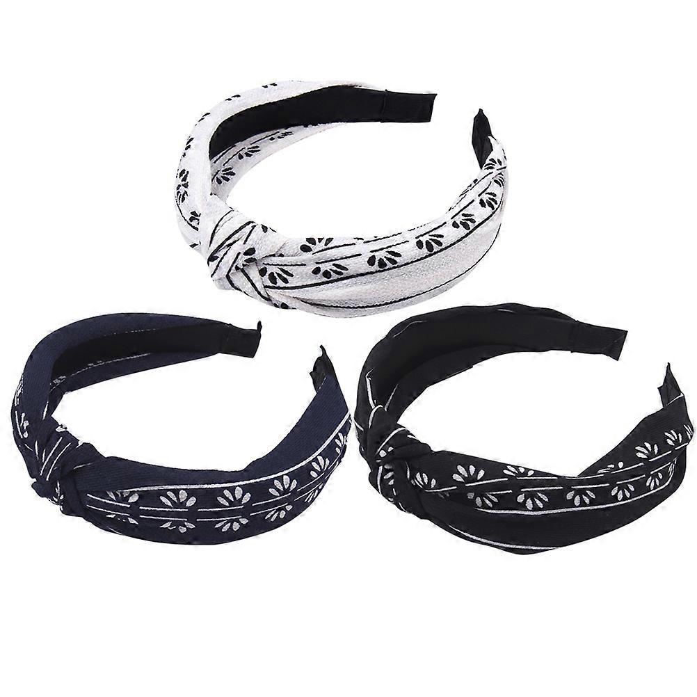 Assorted Color Cloth Hair Hoop with Knot and Flower Design for Women's and Girls 3 Pcs Set