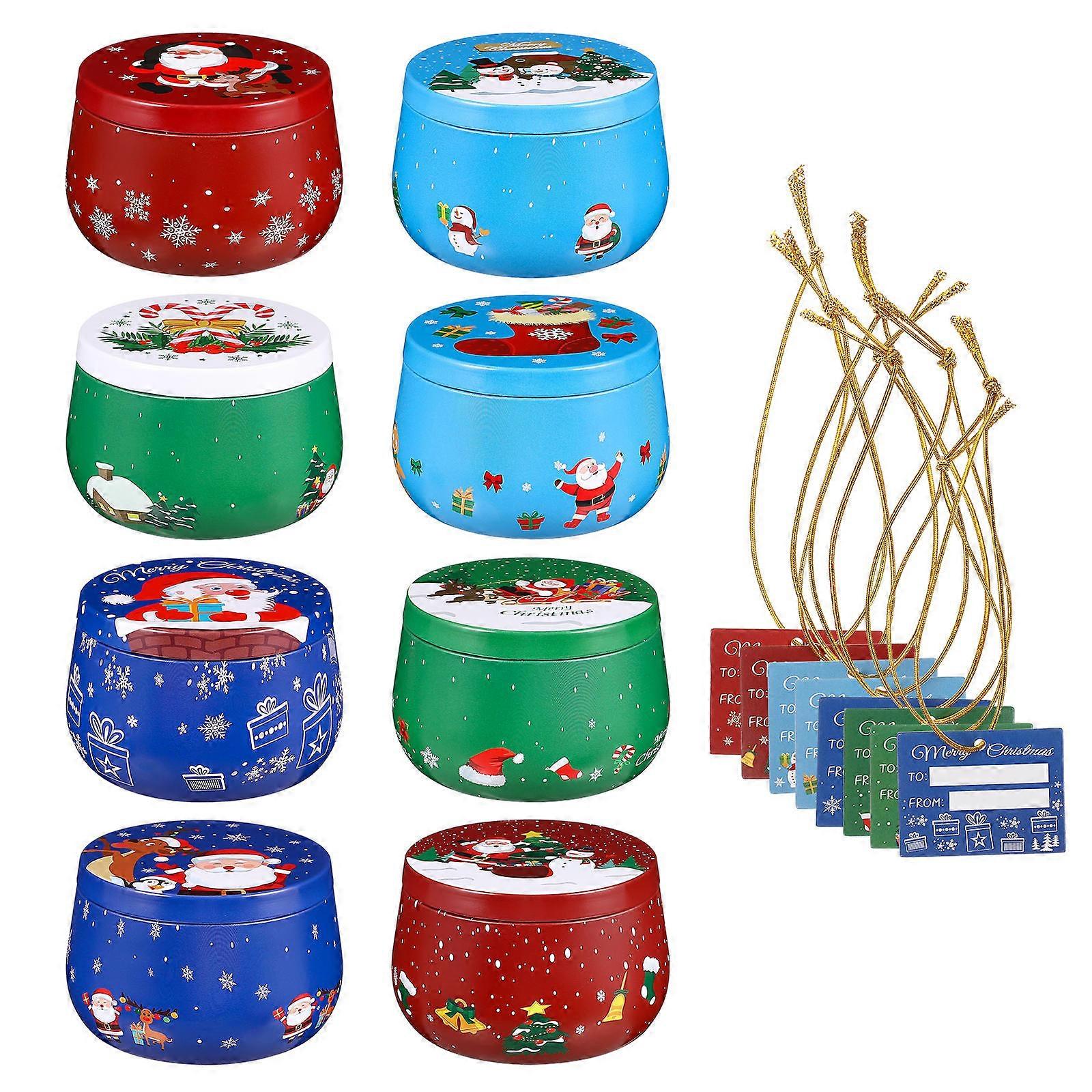 These ready-to-use candle holders or storage containers bring an elegant sense of “homey and cozy” just in time for the holidays. Decorating this year has just easier with our Christmas tins. Make your candles, store them in the tins and light the wicks for a soothing and snuggle-worthy night. Try using these compact boxes to store chocolates, nuts, and candies and leave in the living room, which will easily impress your guests. Features - Brand: Cabilock. - Color: As Shown. - Material: Food grade tinplate. - Size: About 5.5x8.5cm/2.2x3.3inch. - Get into the holiday spirit with our Christmas Candle Tins! They'll hold your favorite scented candles or peppermint candies, and brighten up your home with holiday joy. - Made of premium food grade tinplate material with excellent workmanship, they are environmentally friendly, airtight and tough. - Candle tins are carefully painted with different Christmas patterns, fashionable and adorable design in bright colors. - With these tin cans, you can candy, buttons, jewelry, craft supplies, or many small items in plain sight. Lightweight and durable, they can provide good protection for the items inside. - Include the for each box, great for -giving occasions. You can write the name and send to him or her. Package list: 8 x Cabilock Christmas Tin Jars 8 x Cabilock