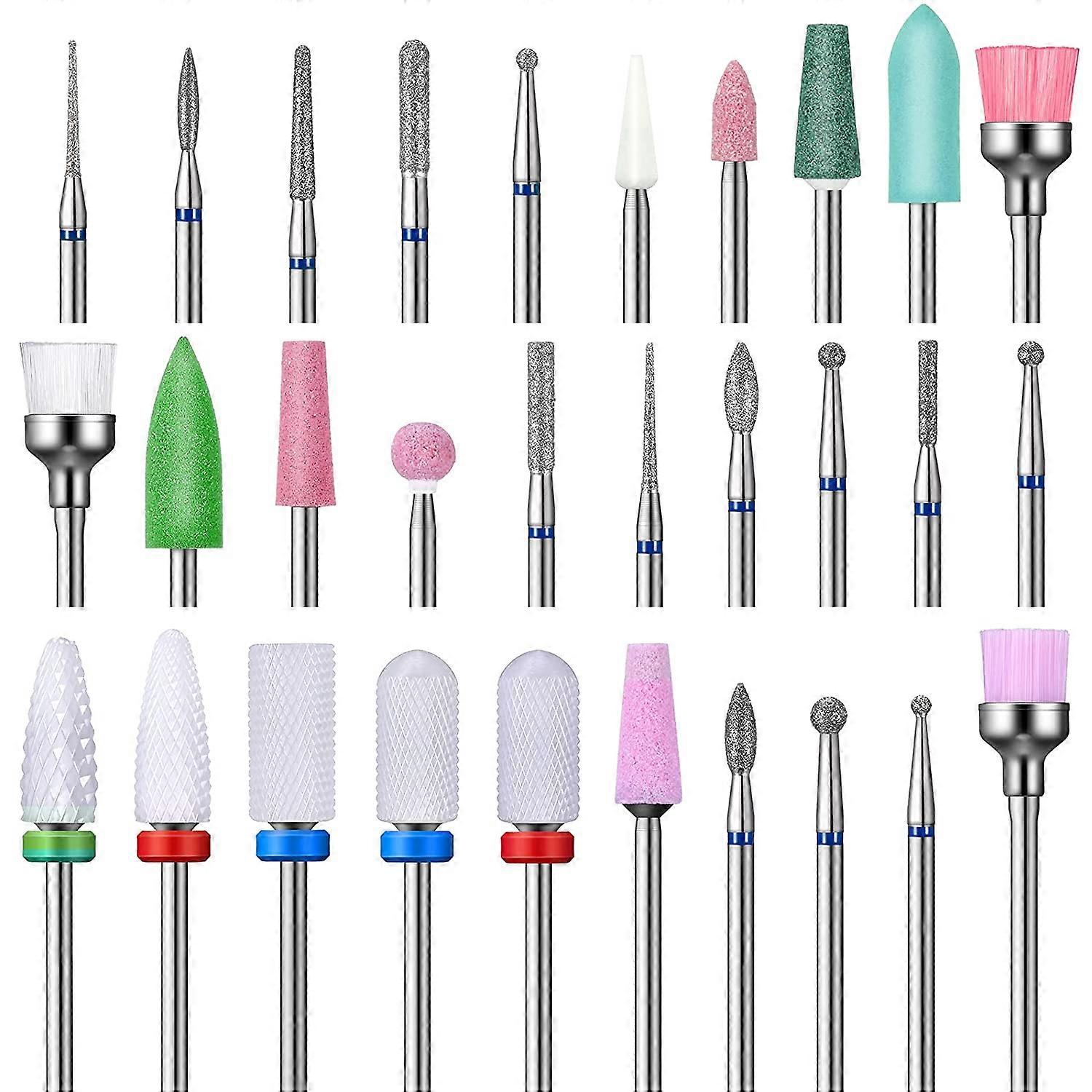 30-piece nail drill bit set with box, 3/32 ceramic nail drill bit set Efile drill bit, nail cuticle