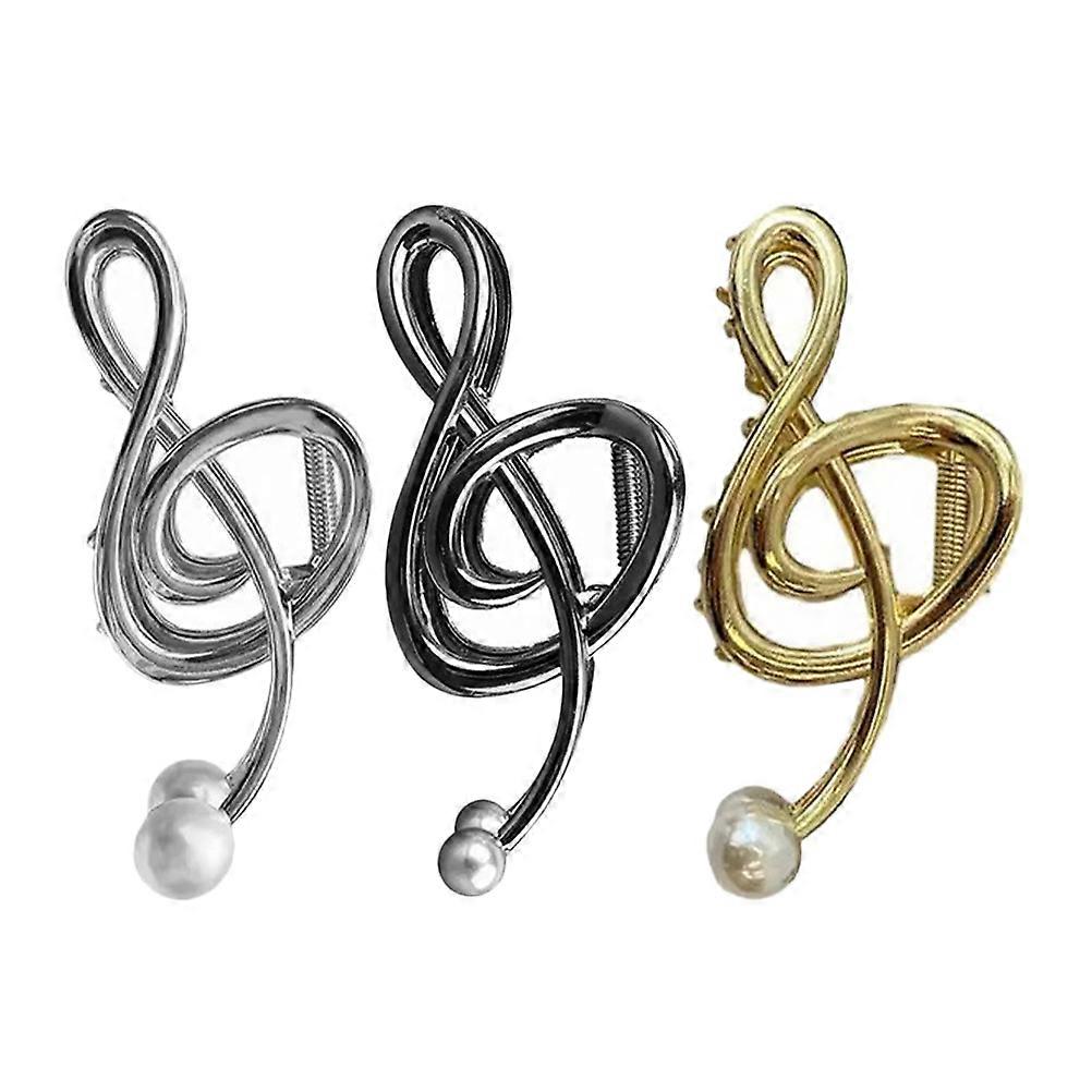 Elegant Music Note Hair Clips Set of 3 Stylish Non Slip Metal Claw Clips with Fake Pearl Accents for Thick or Thin Hair, Suitable for Casual and