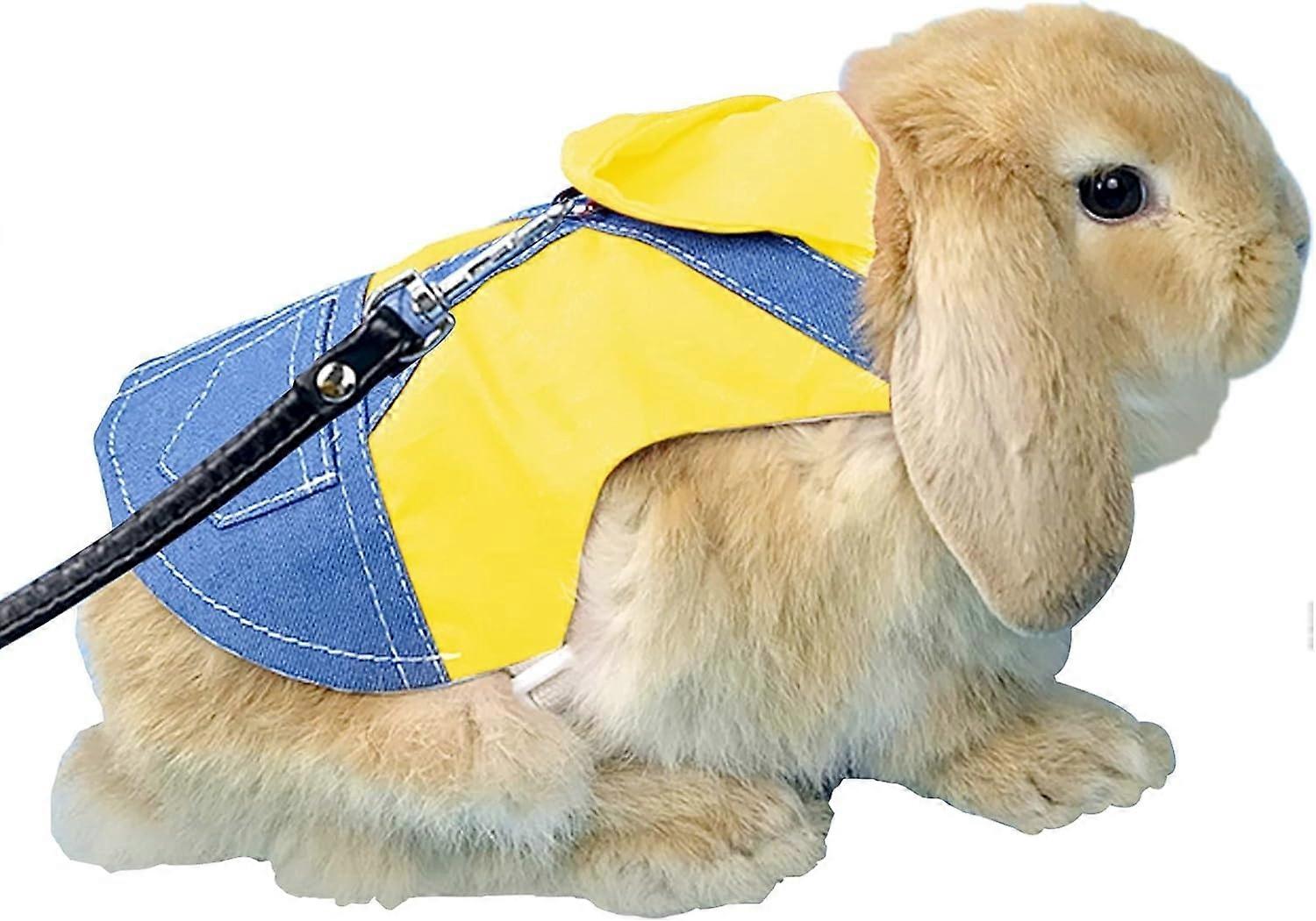 Rabbit Harness and Leash Set, Breathable and Casual Denim Strap with Comfortable Leather Leash 1.25m