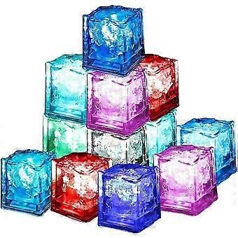 LED Illuminated Ice Cubes Set of 12 Colorful Squares for Champagne Towers, Parties, Weddings, Clubs and Bars, Slow Flash