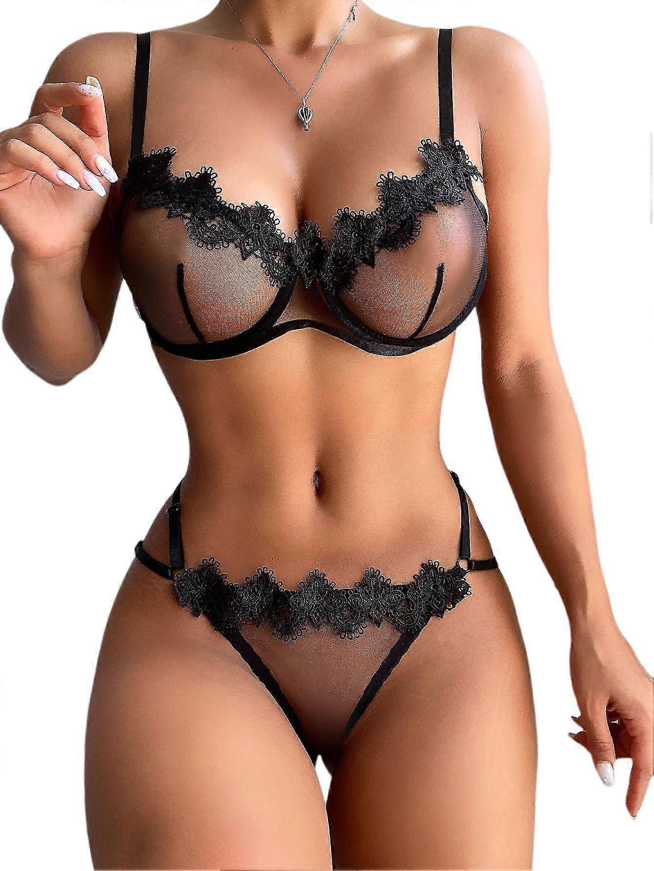 Elegant Women's Lingerie Ensemble Featuring Alluring Mesh Design, Open Stitch Suspenders, and Steel Ring Accents for Enhanced Appeal