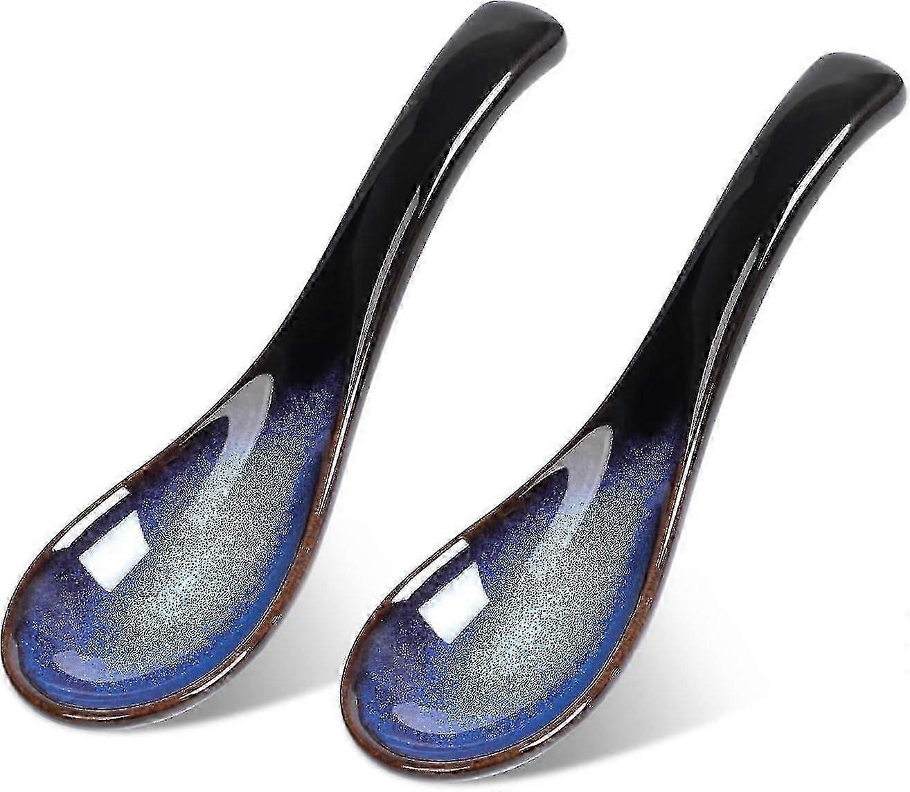 Japanese Ramen Pho Soup Spoon Set - Asian Ceramic Rice Spoons for Cereal Stews, Retro Porcelain Soup Spoons