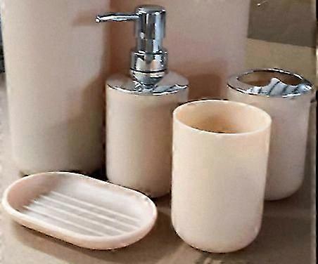 4-Piece Plastic Bath Accessories Set: Toothbrush Holder, Cup, Soap Dispenser, Dish for Home Decor