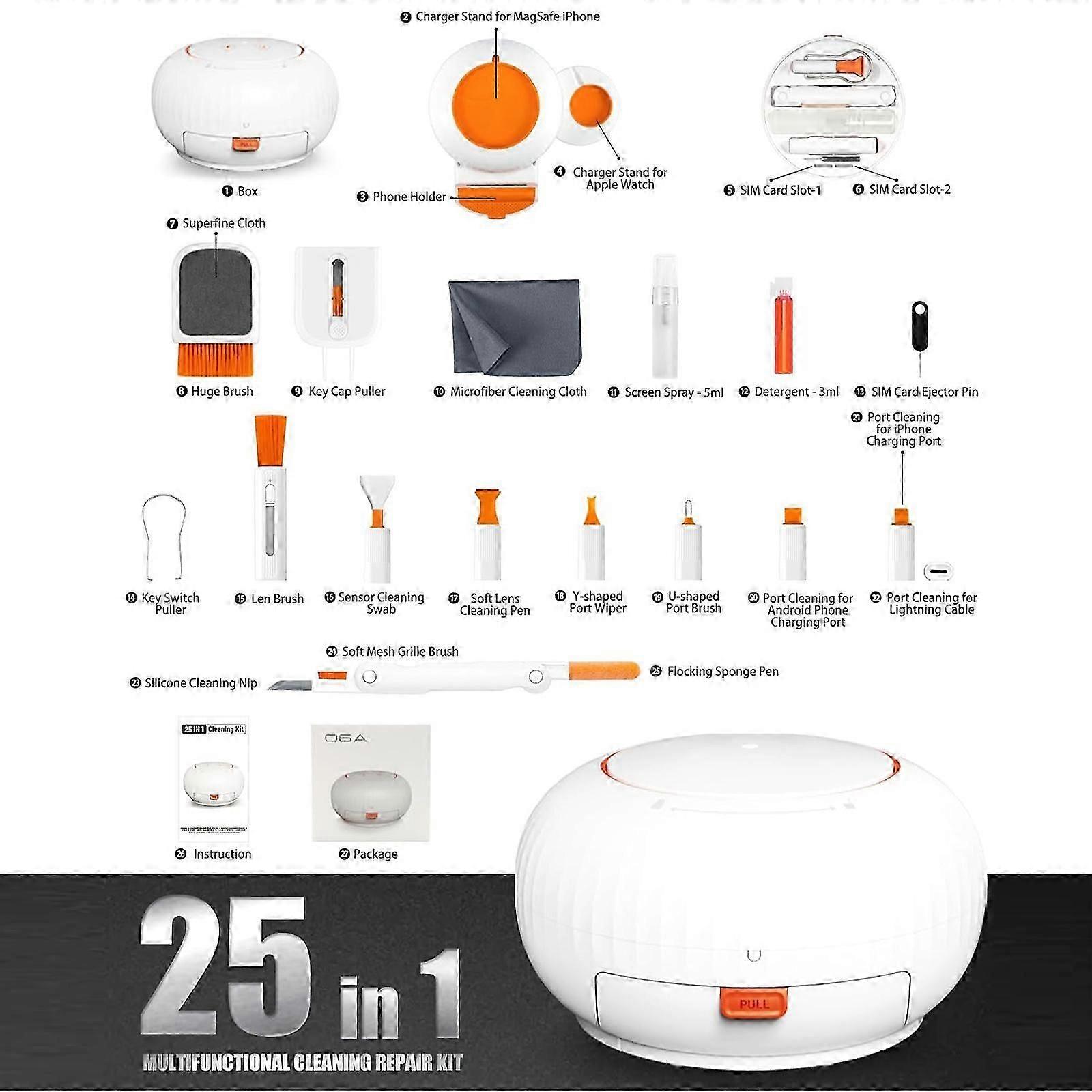Electronics Cleaner KIT (25 in 1), Cleaning for Cell Phone, Laptop, Keyboard, Screen, Cleaning Spray Tool, Clean Brush Device for Earbud Headphone Cam