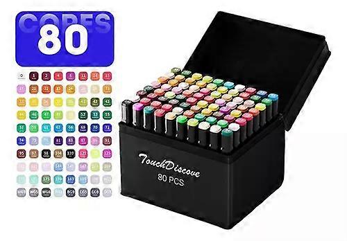 Multi-functional dual tip: Fine tip (1-2 mm) for details and outlines. Wide angled tip (3-6 mm) for filling and shading. Vibrant and diverse colors: The kit features 80 bold shades to bring vitality to any creation. Perfect color blending for smooth transitions and realistic gradients. Instant drying: No smudging! The paint feels dry to the touch and wont stain your hands. High capacity and long-lasting: The cartridges use high-yield ink, ideal for continuous use. Ergonomic and comfortable design: Ideal for extended drawing and painting sessions without causing hand fatigue. Practical zippered case: Durable case for storing, protecting, and transporting your pens, combining style and organization. Multi-functional: Perfect for illustration, calligraphy, graphic design, sketchbooks, scrapbooks, and more!Add color to your creativity today! Included items: 80 x pens 1 x storage pouch Note: Color: The colors of the pens vary by batch, but no colors are repeated. They may not match the image shown, as the image is for reference only. We do not know which batch or order the white 0 pen will be in.
