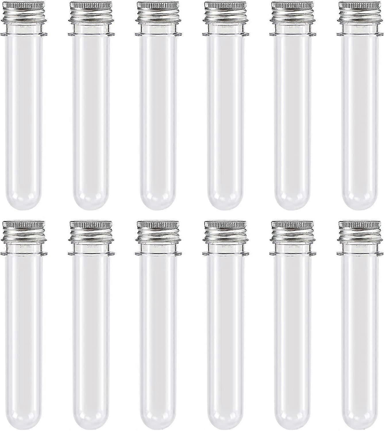 Set Of 12 Clear Plastic 40ml Test Tubes With Screw Cap Yl
