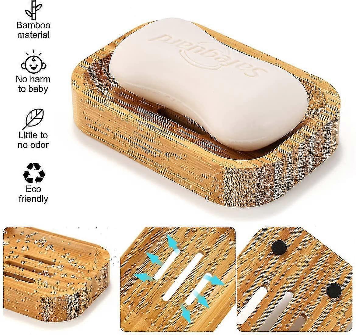 Set Of 2 Natural Wood Bamboo Soap Dish For Bathroom Kitchen Sponges Storage