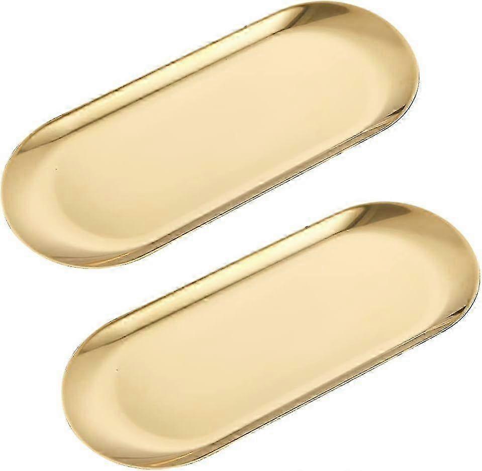 Set of 2 Oval Gold Sparkle Metal Serving Trays 9 inch Decorative Brass Trays with Mirror F SZRH AC-