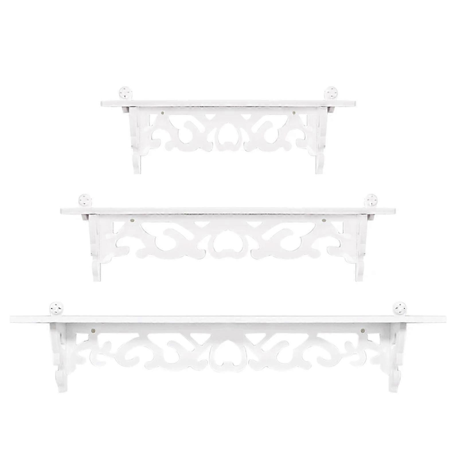 Set Of 3 Shabby Floating Wall Shelves Bookshelf Carved Wooden Retro Wall Shelf for Bedroom Bathroom Kitchen