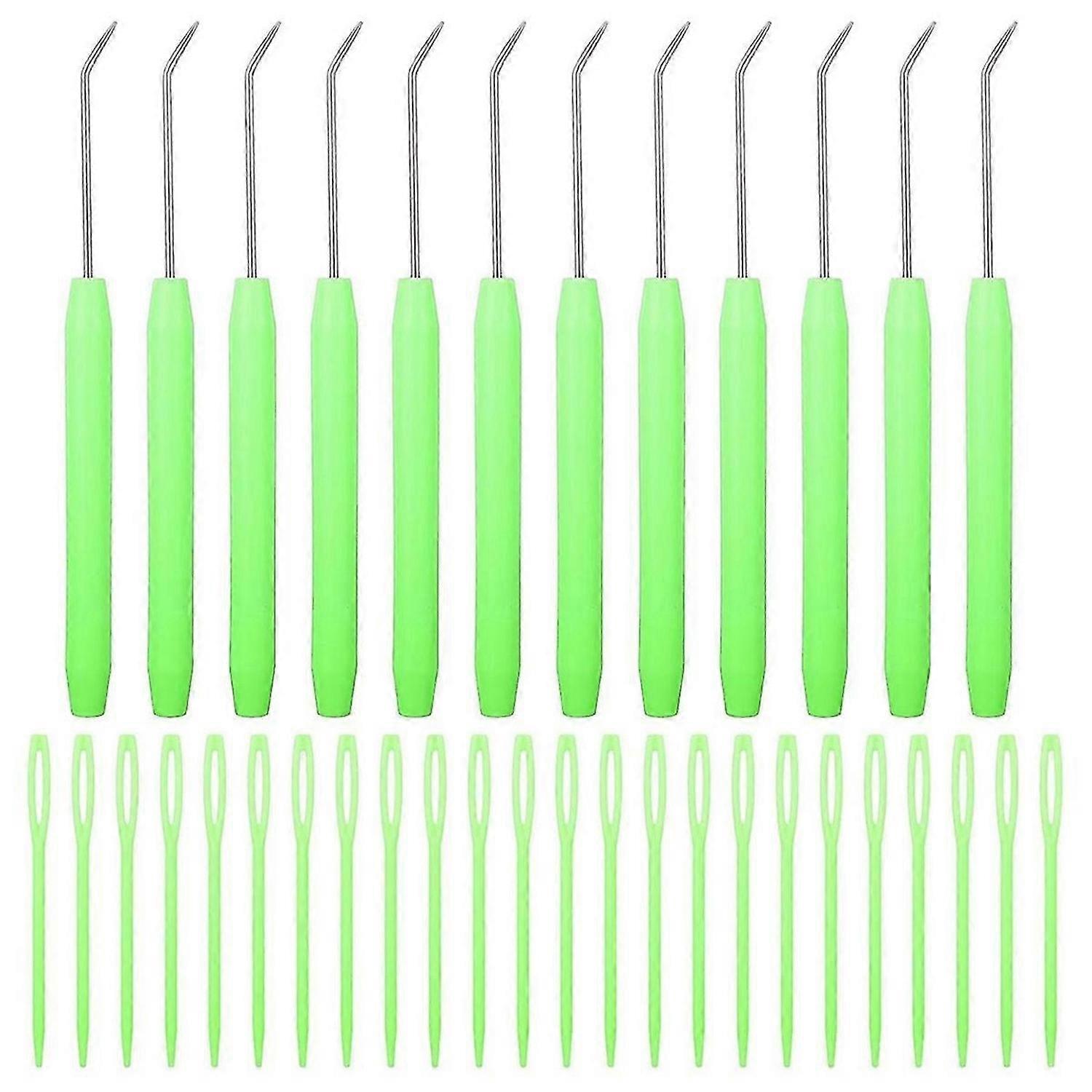 Ergonomic Design: This knitting hook features an ergonomic handle design to ensure a comfortable experience even during prolonged use,making it perfect for knitting enthusiasts. Abundant Kit Combination: You will receive 12 knitting loom hook and 24 large-eye knitting needles,providing a sufficient quantity to meet your various knitting needs. High-Quality Materials: The loom knitting hook are made with plastic handles and stainless steel hooks,while the knitting needles are made of plastic,ensuring durability and providing a reliable knitting experience. Versatile Uses: This set of loom knitting hook can be used to create a variety of items including rugs,gloves,scarves,bags,hats,boots,blankets,and socks,allowing you to unleash your creativity. Convenient and Practical: The large-eye plastic sewing needles and knitting hooks are used in conjunction to easily finish the final touches of knitting projects,suitable for users of all ages,making it an ideal toolkit for knitting enthusiasts.<br><br>Product name: 36pcs loom knitting hooks set Product style: regular goods Product function and use: loom weaving hook set Product size: 14.5 x 9.5cm/5.7 x 3.74inch Colour:B:Green Material:Plastic<br><br>Package Contents: 1set * knitting loom hook<br><br>Only the above package content, other products are not included. Note: Light reflection and different displays may cause the color of the item in the picture a little different from the real thing. The measurement allowed error is +/- 1-3cm.